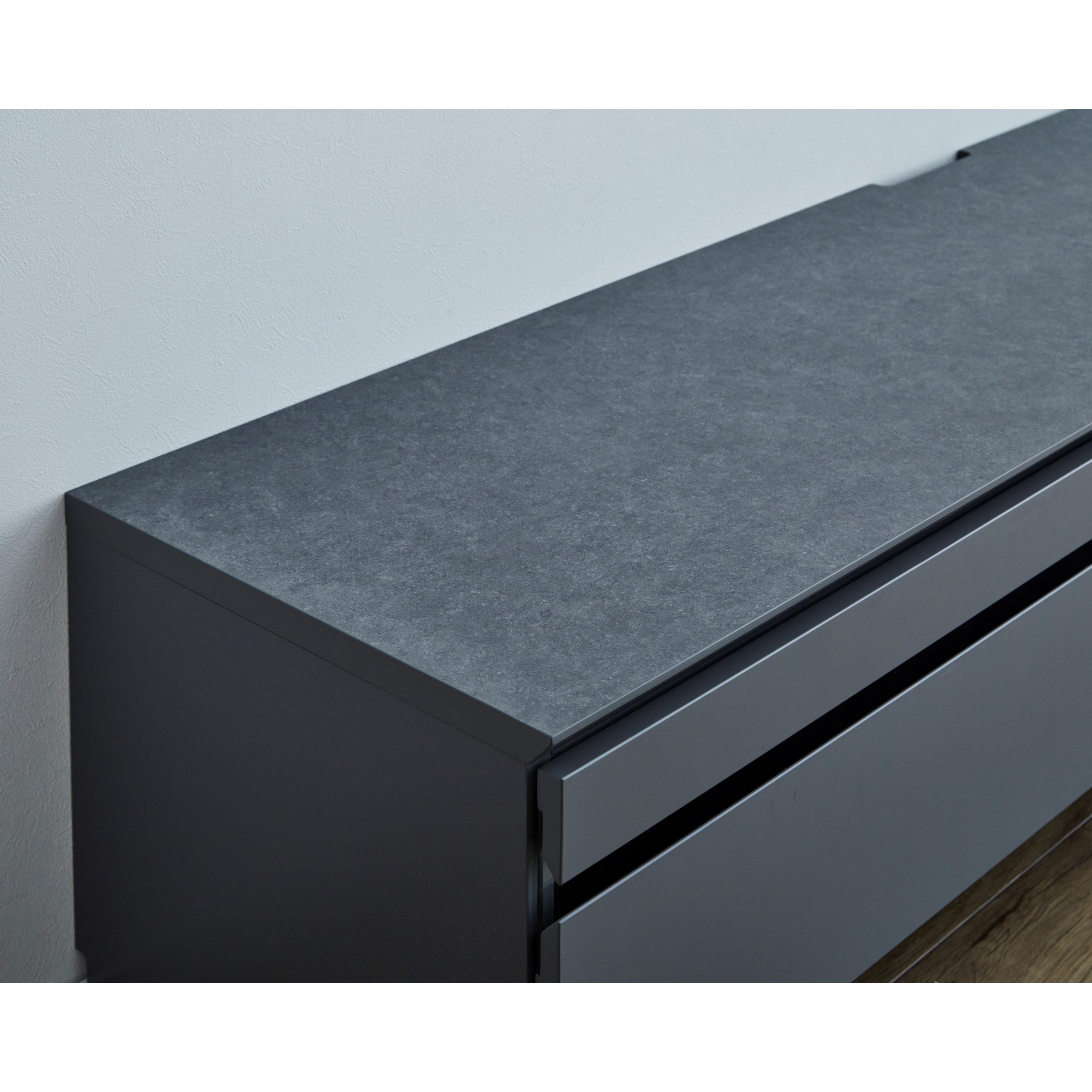 天板には、石目調のメラミン材を用いることで、キズに強く、意匠性も高いものになっています。