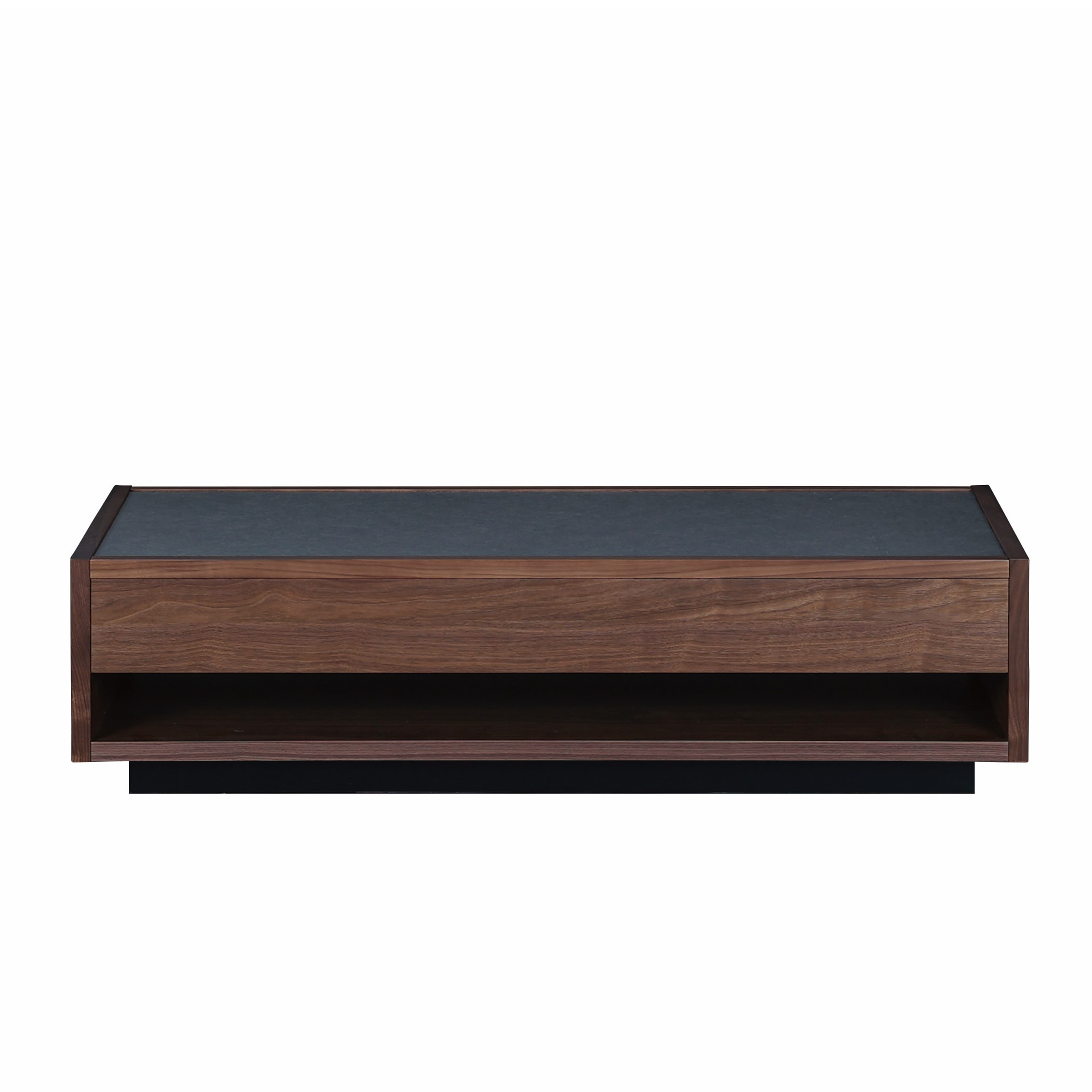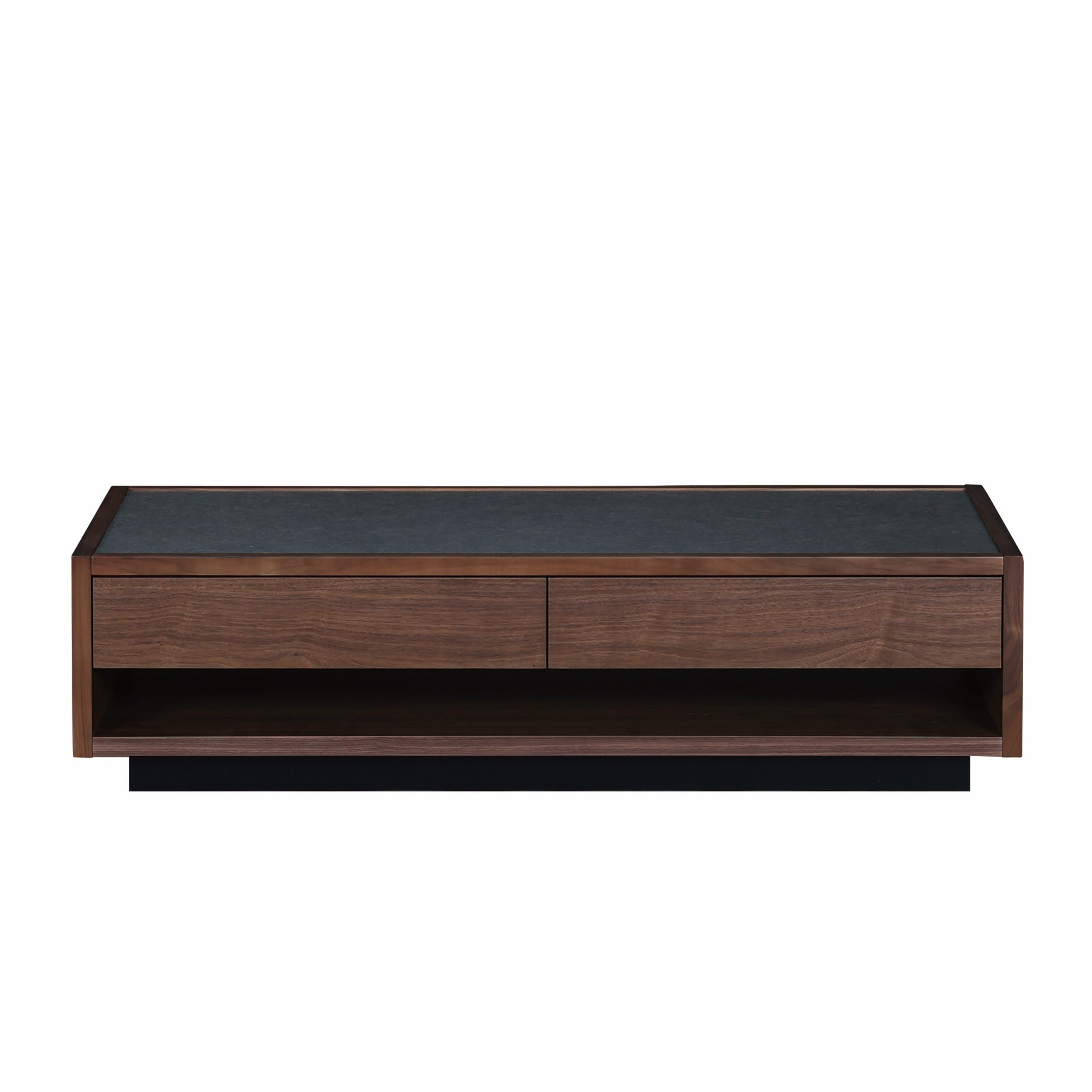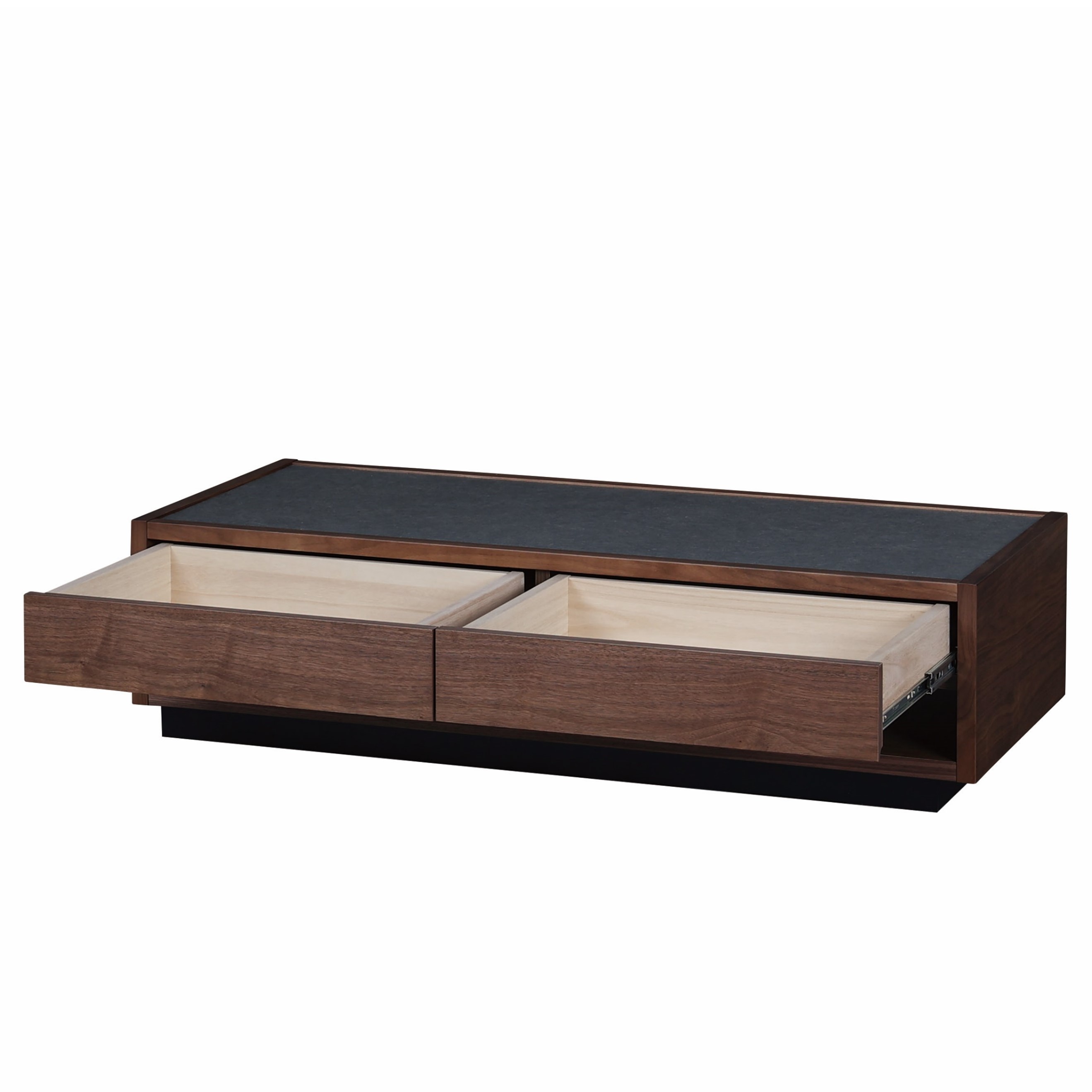 本体はウォールナットでシンプルにまとめあげ、二杯の引出しを用意し、収納力も高い仕様です。
