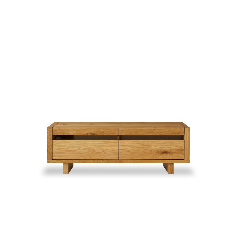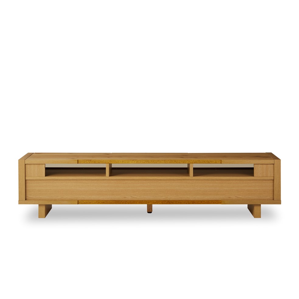 無骨な見た目に、雄々しい木脚をつけたローボードです。