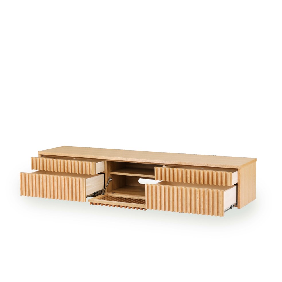 中央のデッキ収納部分は、調整可能な可動棚を設けています。