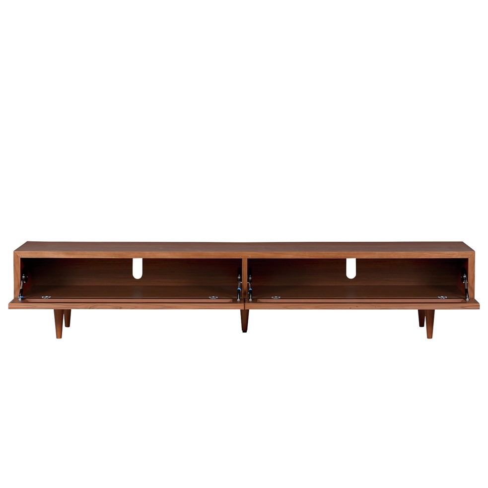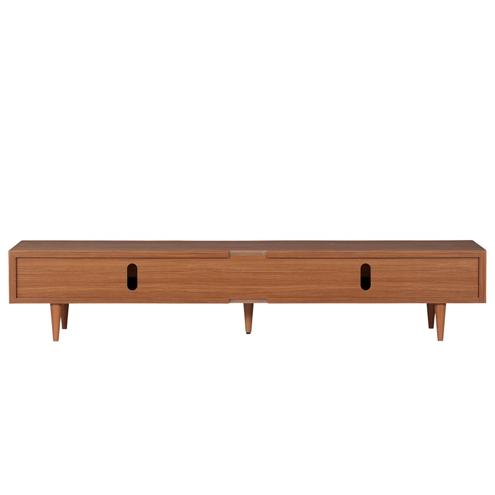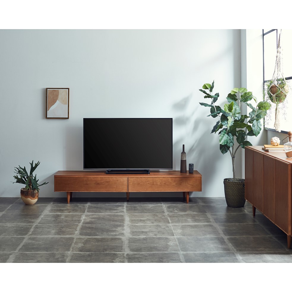 TVボードの前板には突板ガラスを採用しているため、扉をとじた状態でリモコン操作が可能となっています。