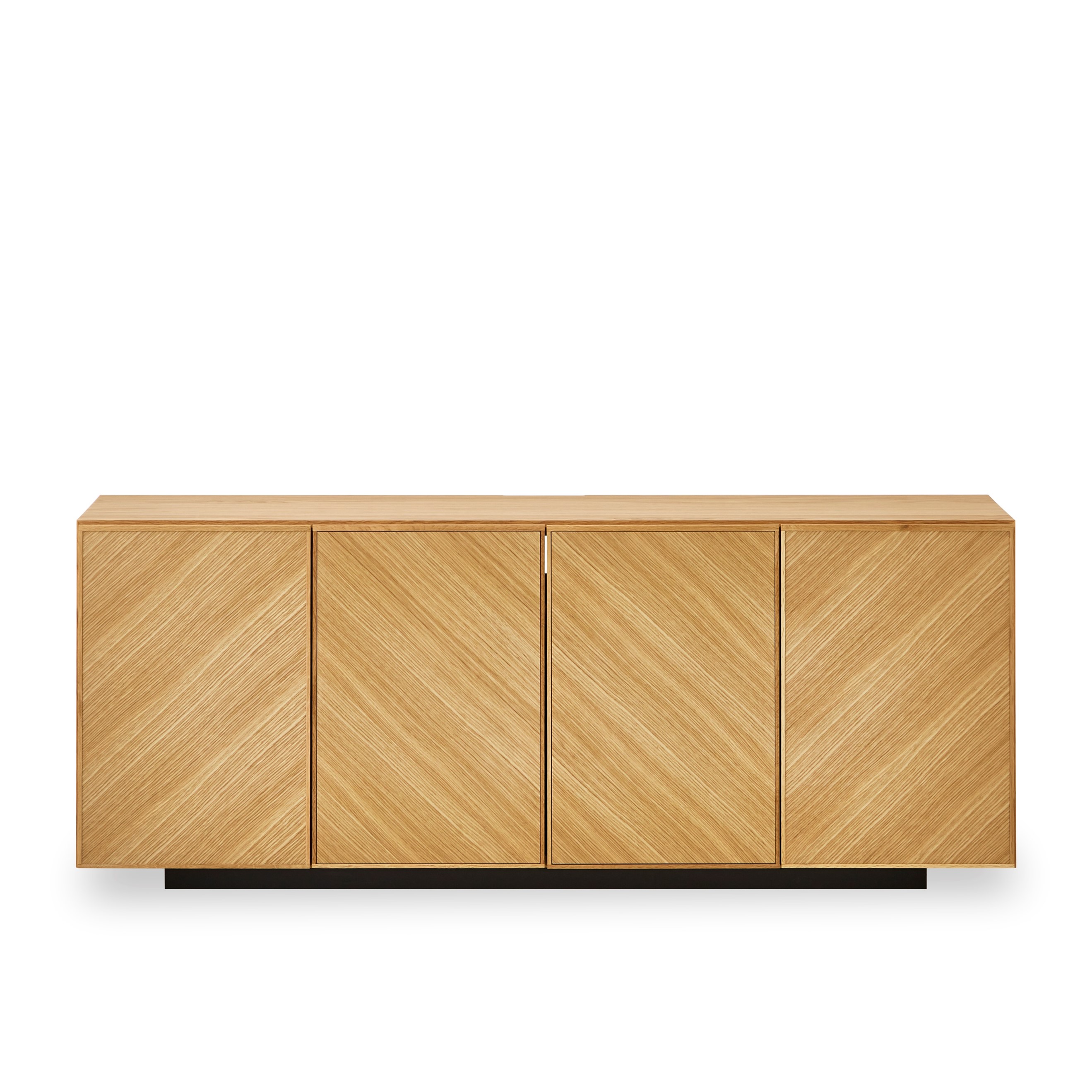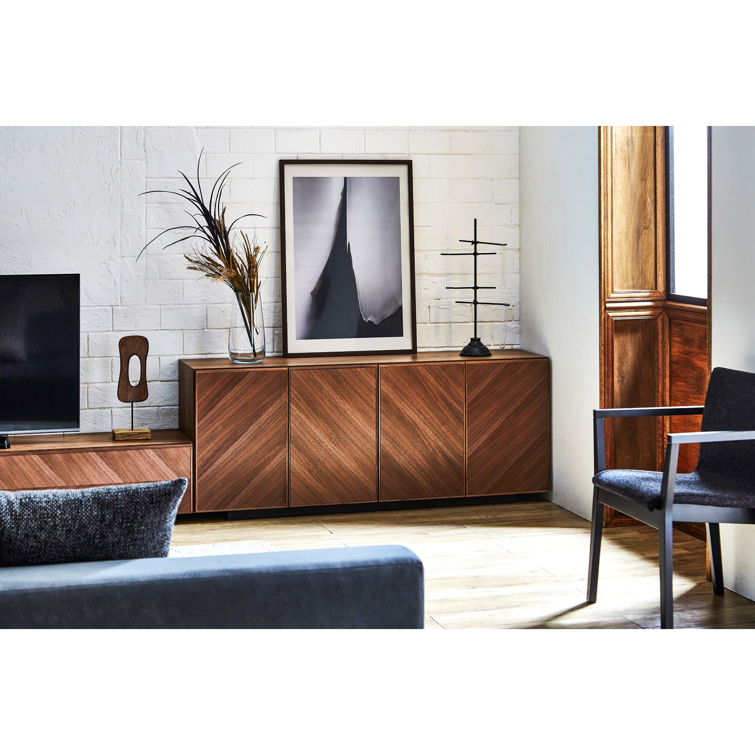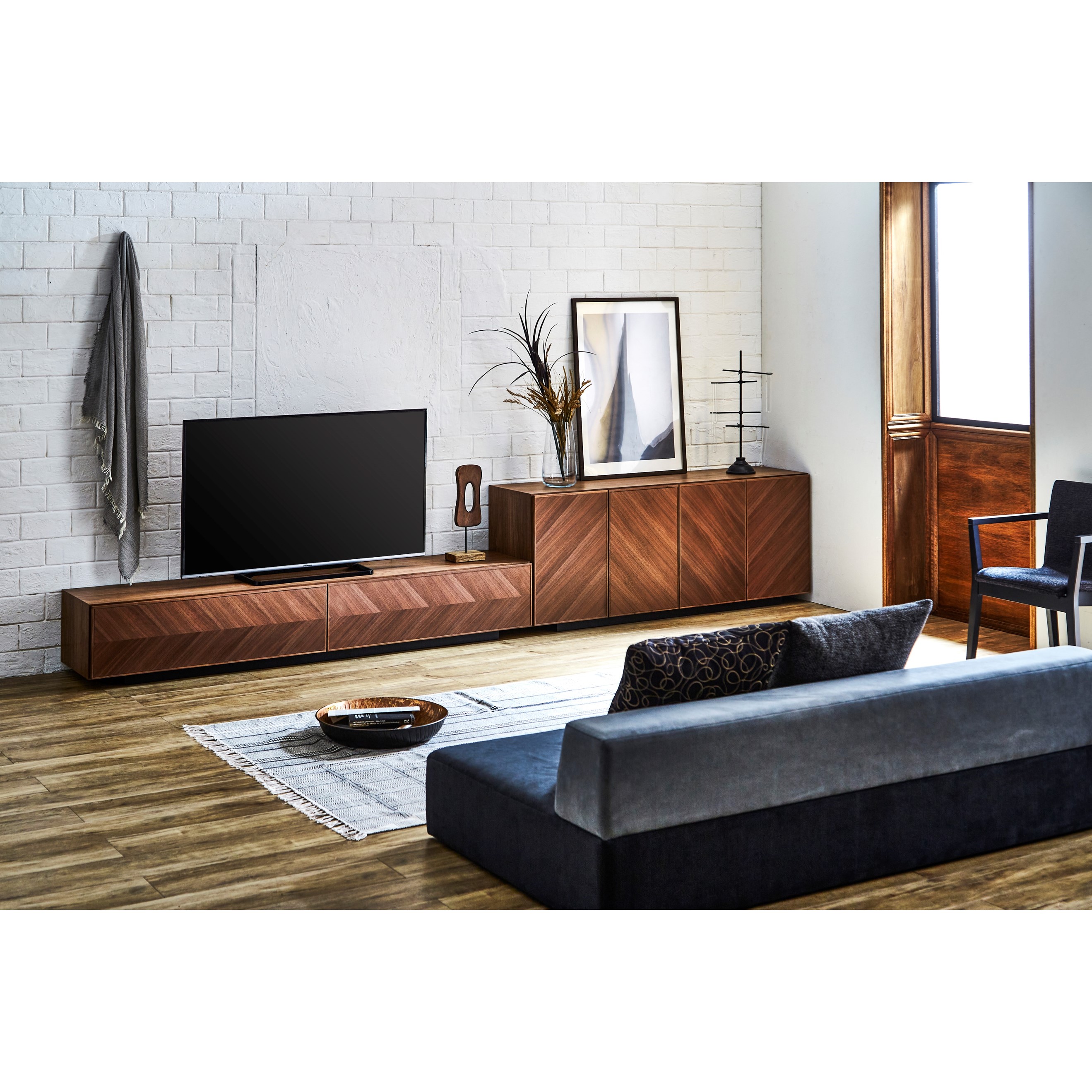 サイドボードは、上下互い違いに、矢羽根突板を用いています。
