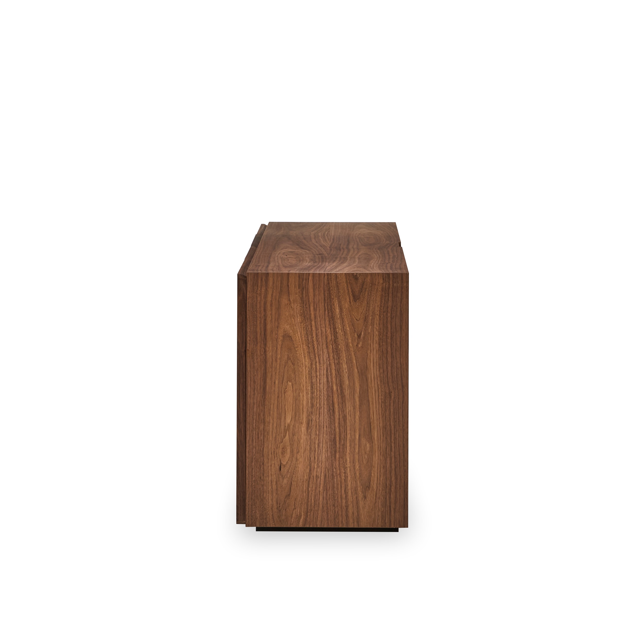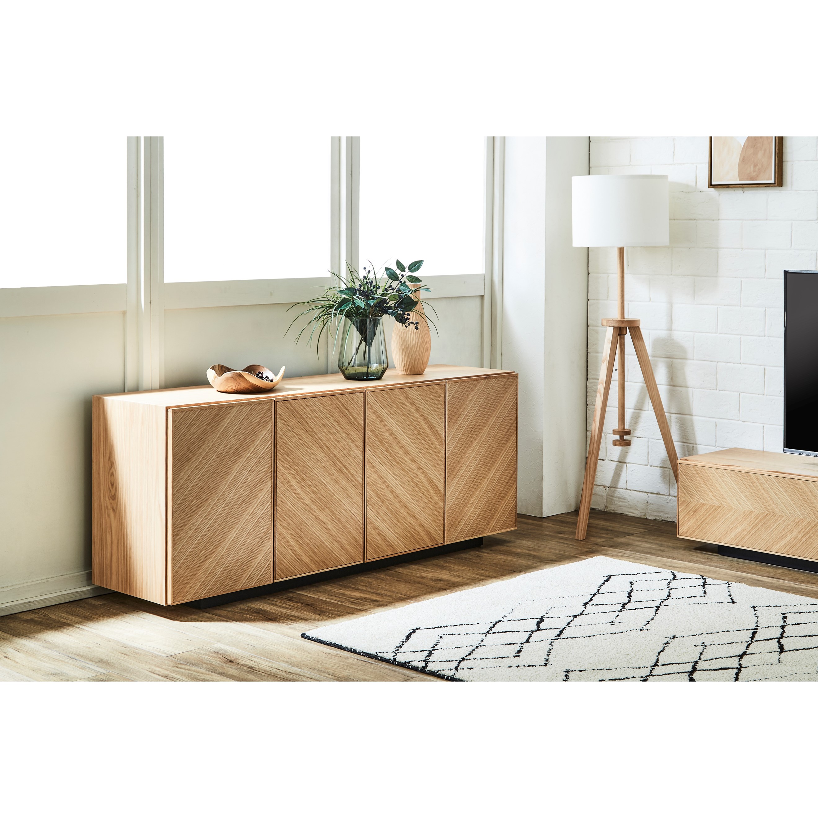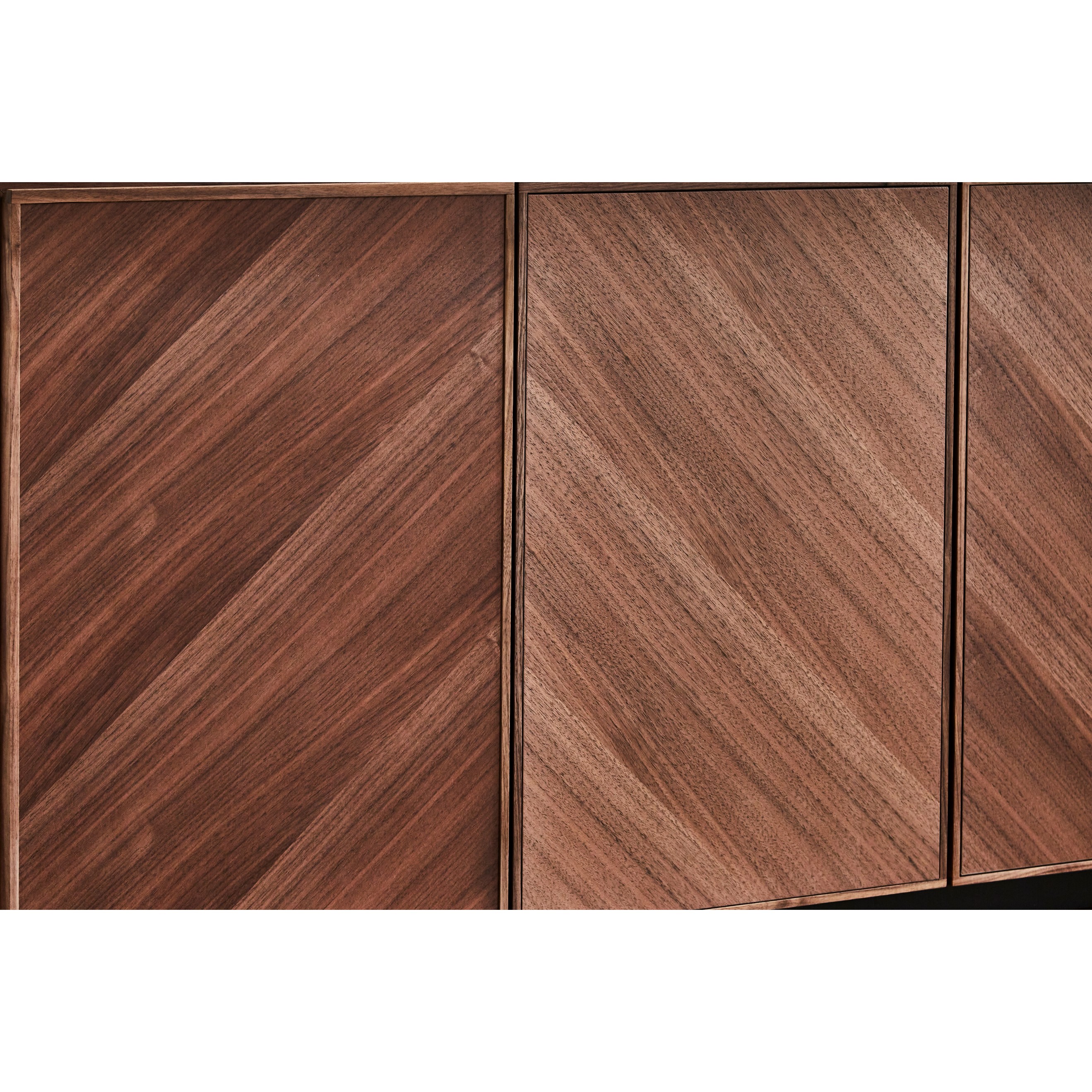 サイドボードは、上下互い違いに、矢羽根突板を用いています。