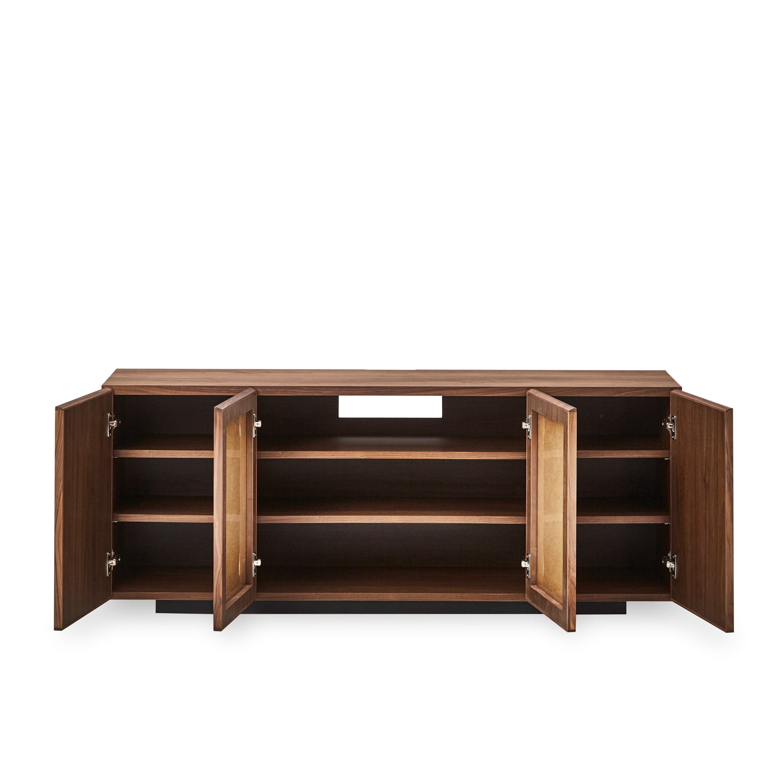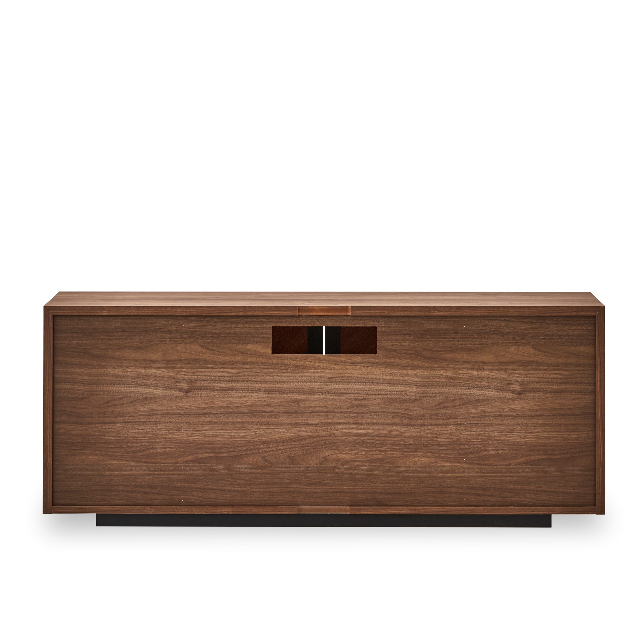 見た目だけでなく、前板には突板ガラスをもちいており、扉を開けずともリモコンを使用できる機能もあわせ持っています。