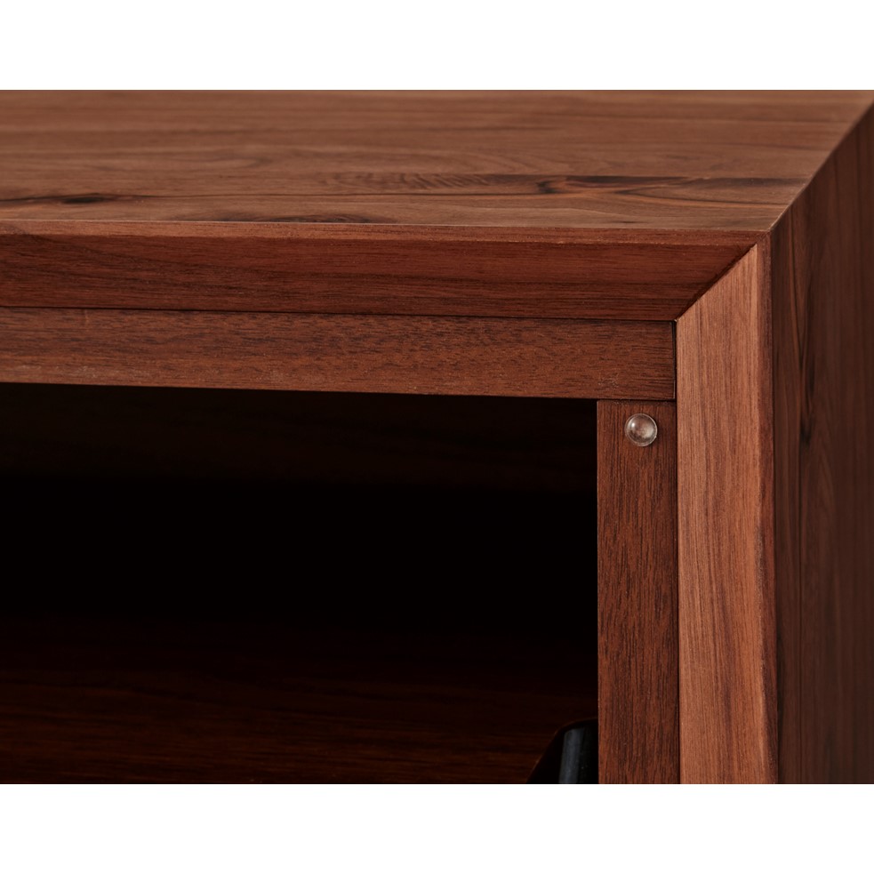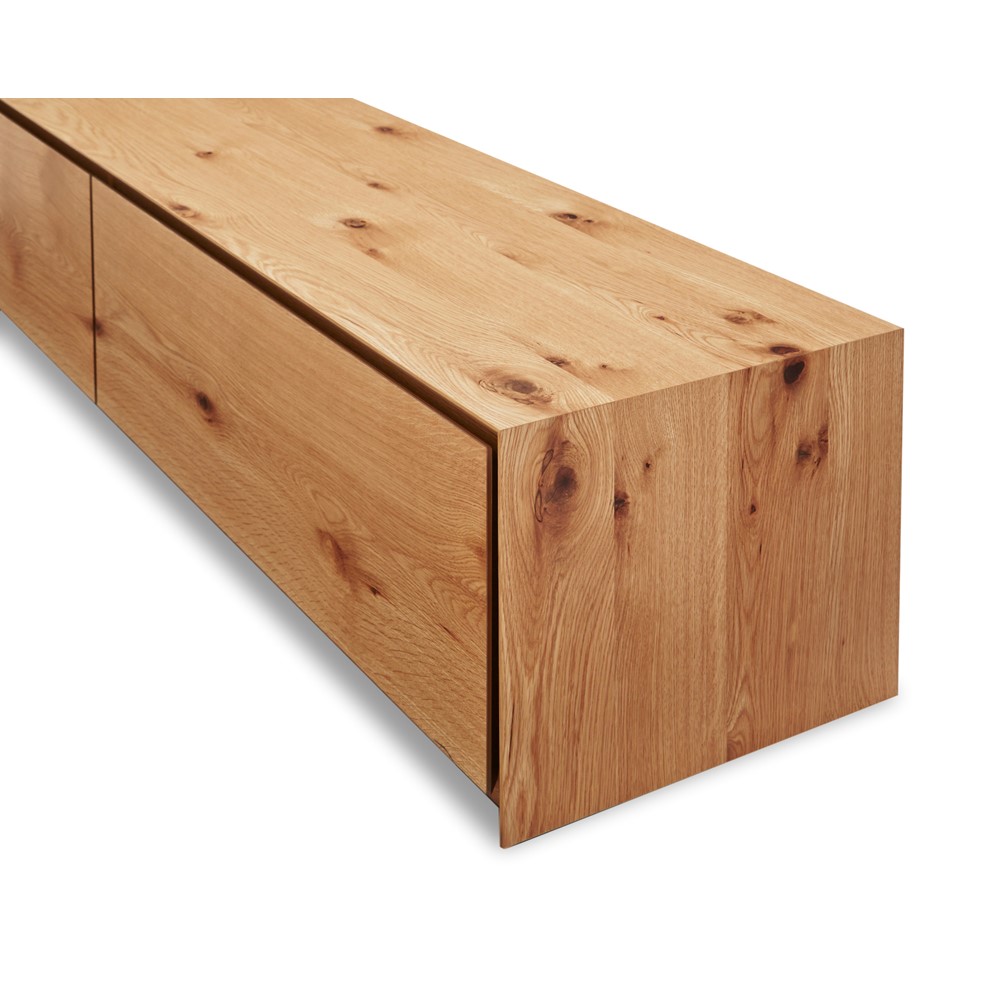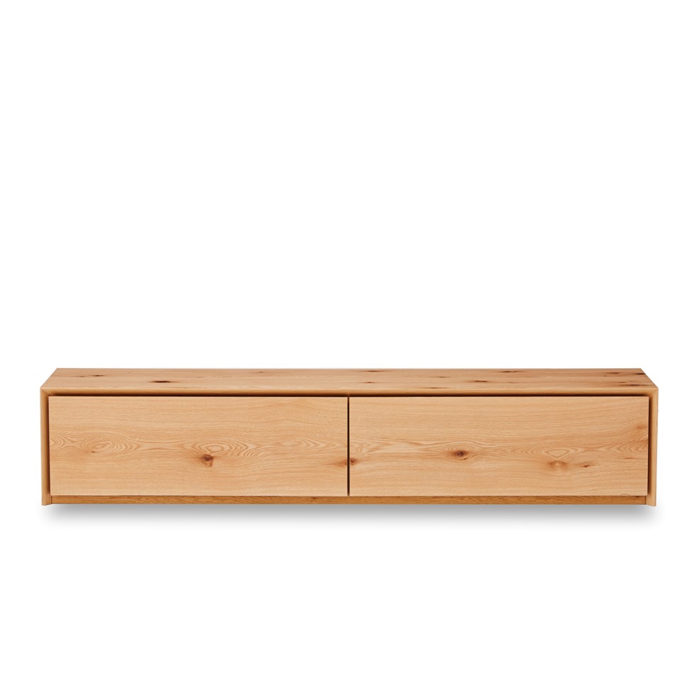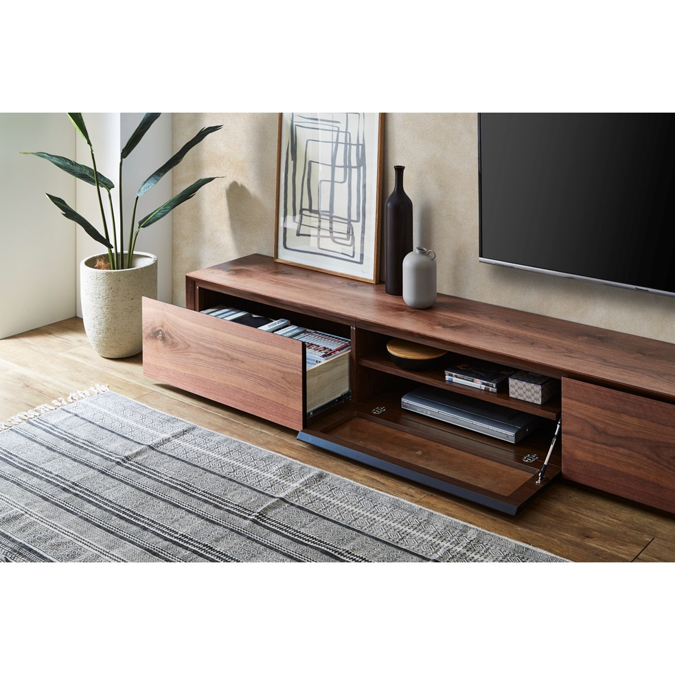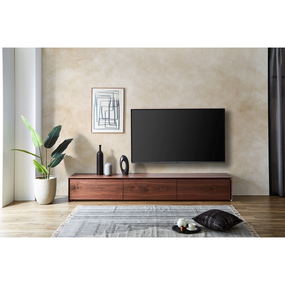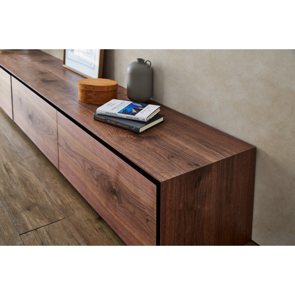 前板には突板ガラスを用いて、繋がった美しい木目でありながら、扉を開けずともリモコンを使用できる使い勝手の良さも持ち合わせています。