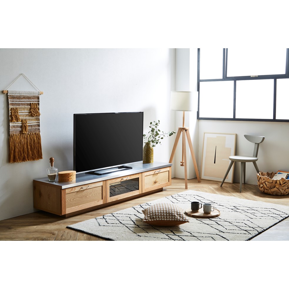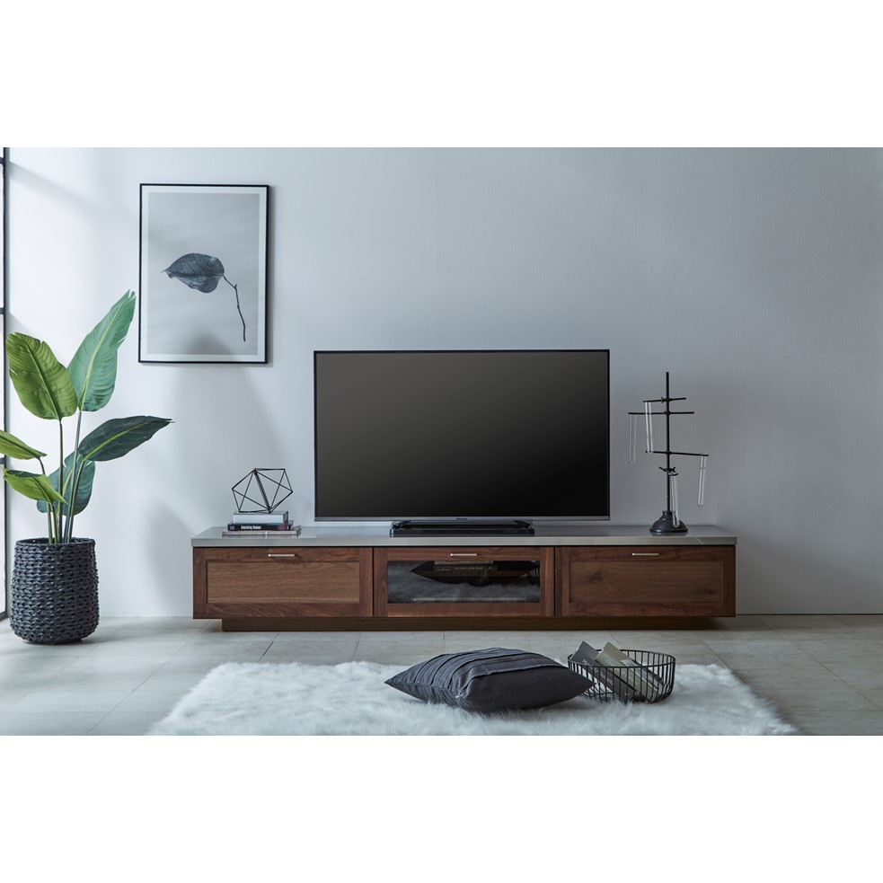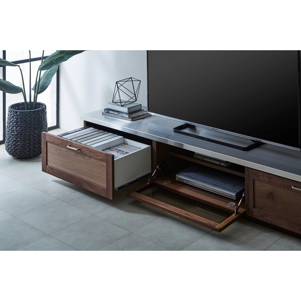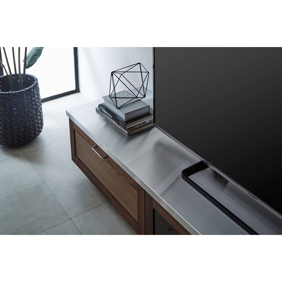 TVボードのガラスには、クリアガラスかブラック系のガラスをもちいることが多いですが、その中間となるバランスのブロンズガラスを採用しています。