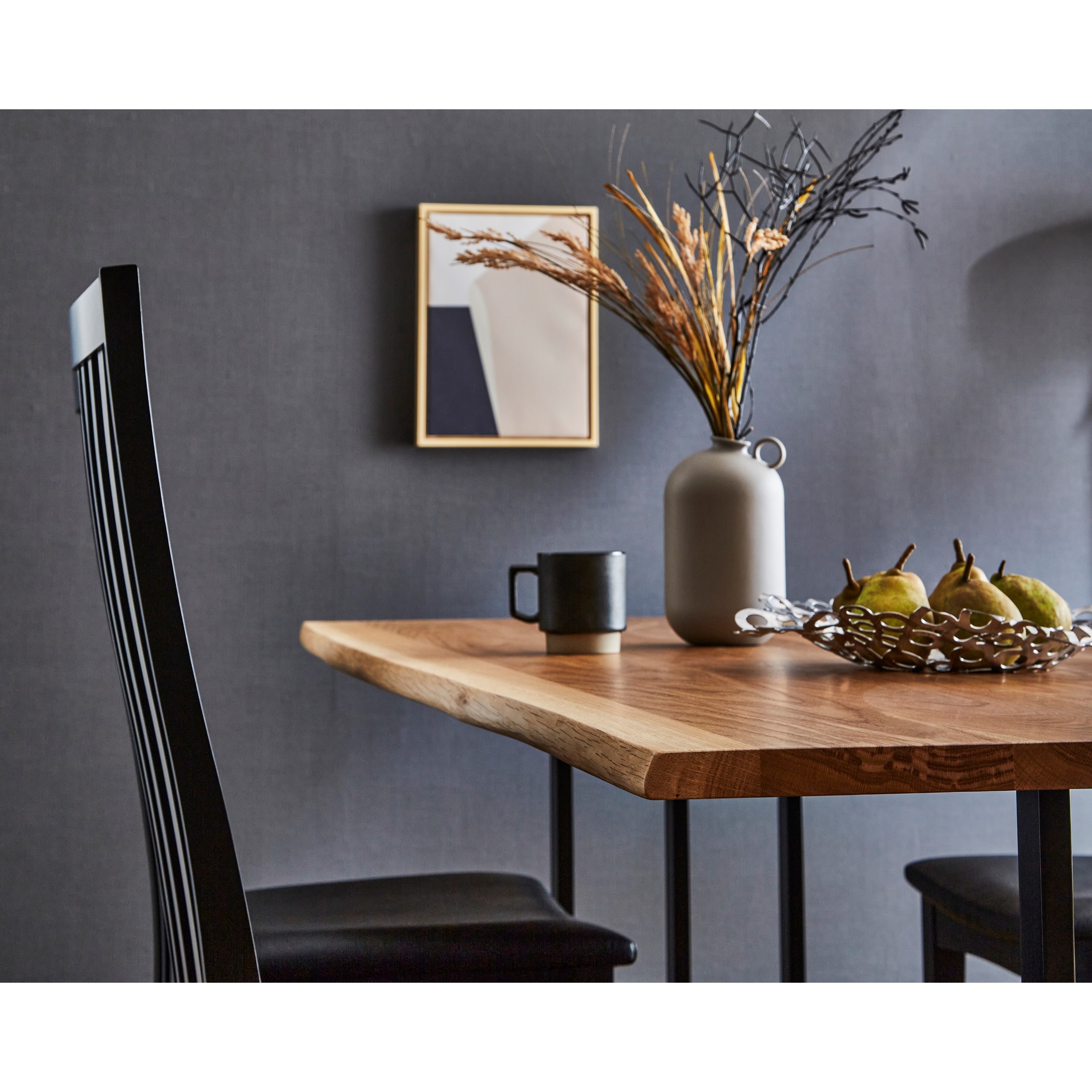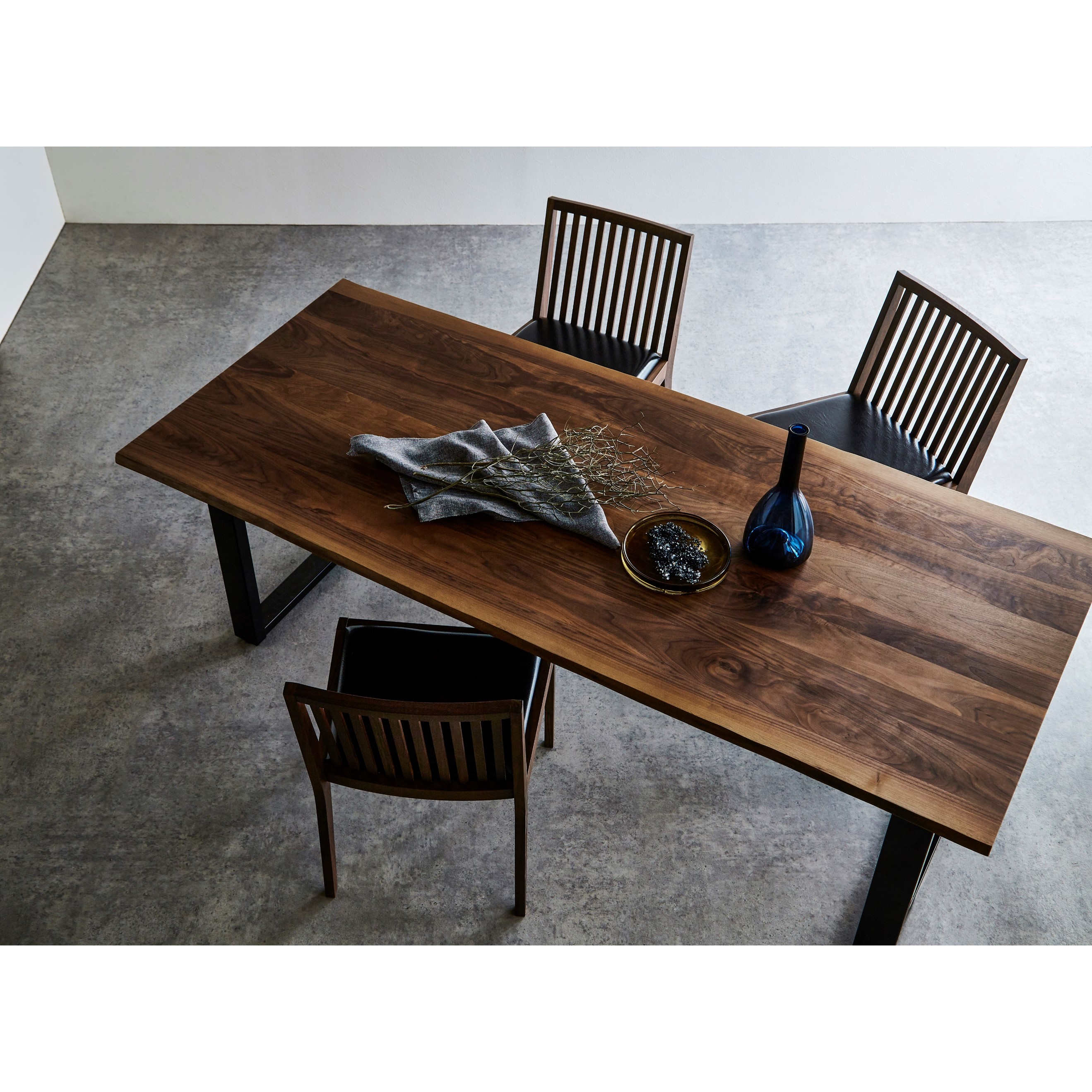 | 素材 | 〈WN〉ウォールナット節有無垢 〈OAK〉ホワイトオーク節有無垢 木材は、外側から腐食が始まります。そのため、丸太の一番外周部にあたる耳は材料として価値が高く、希少です。 OAKはホワイトオーク節有材を用いています。これは丸太をスライスしたときの表情に合わせるためです。 |