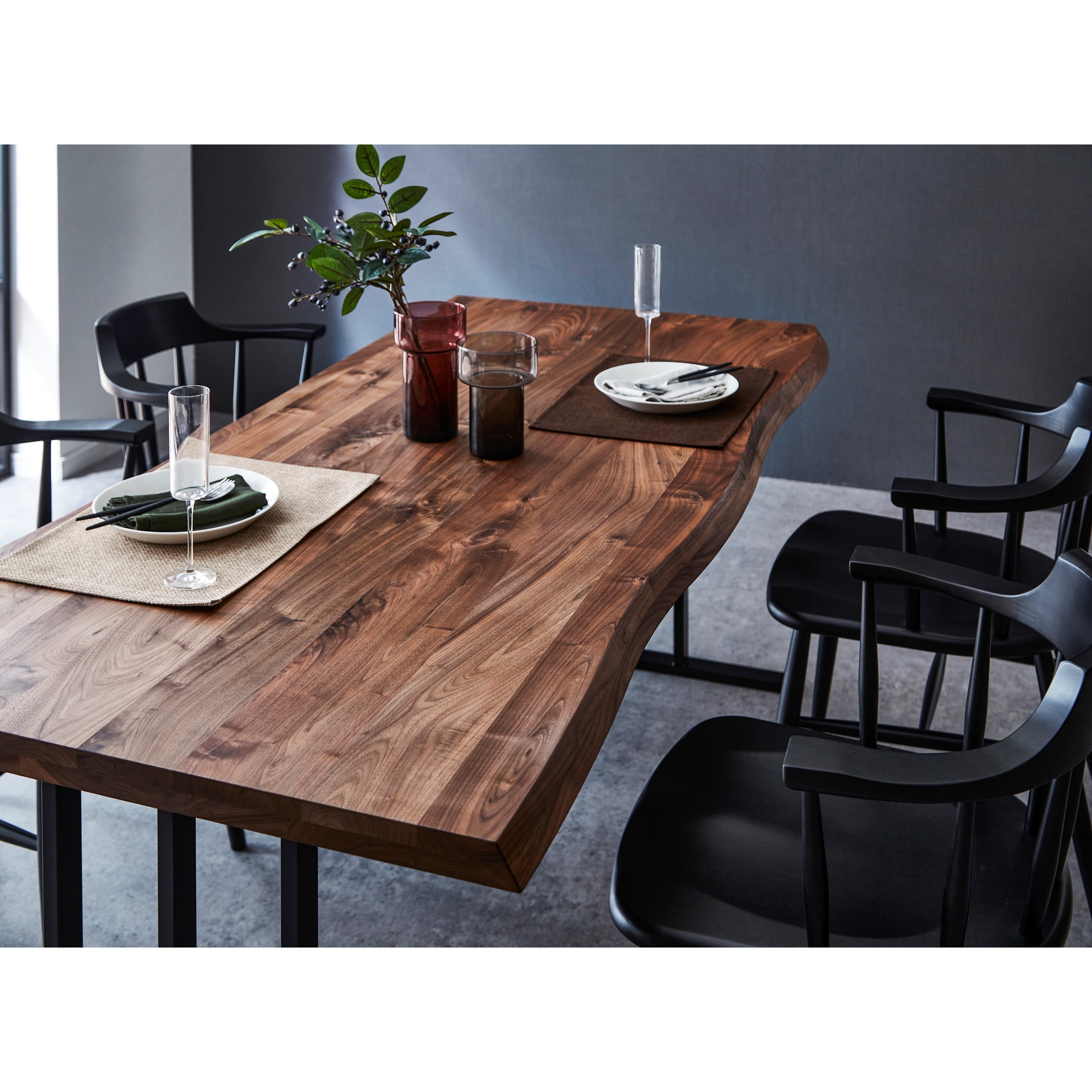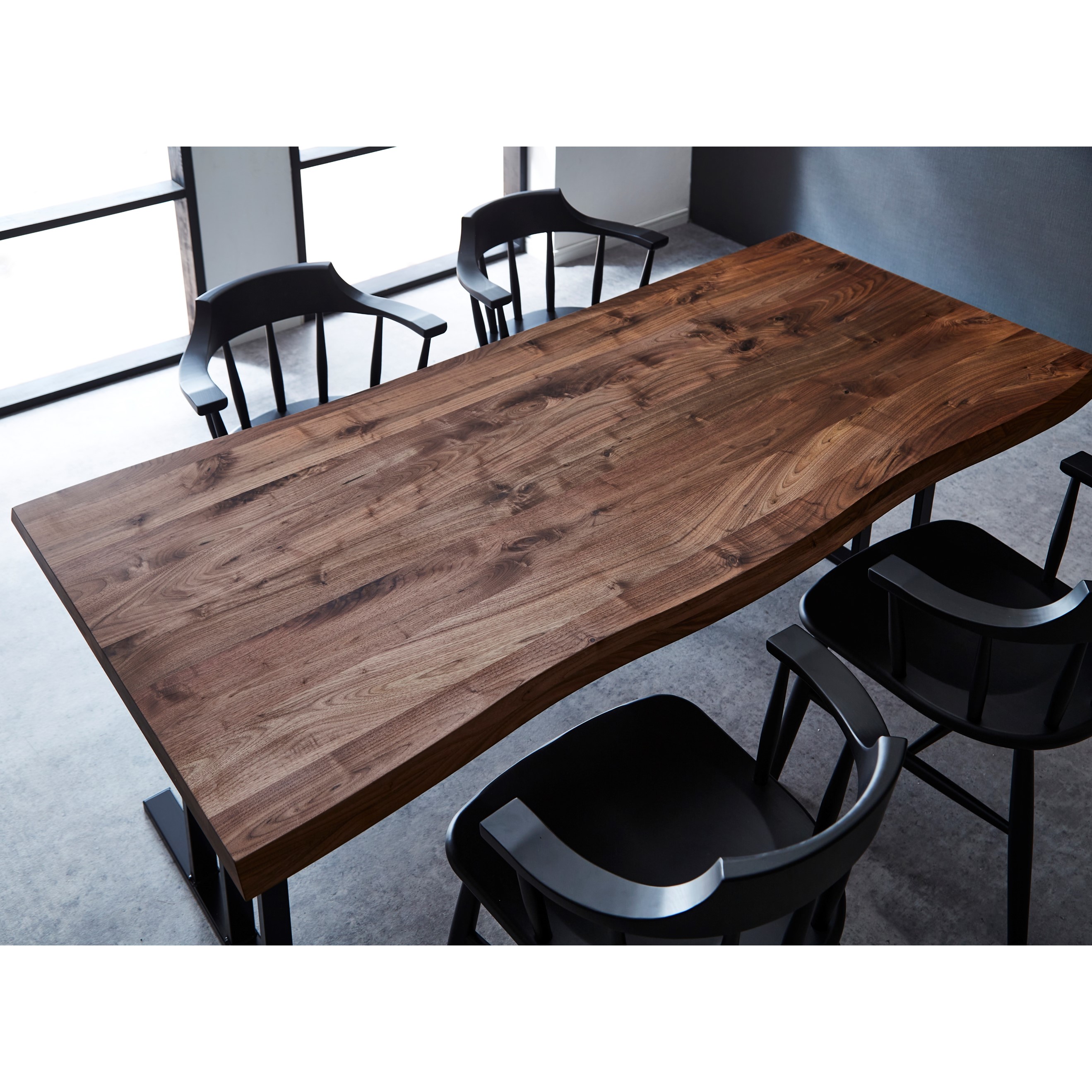 厚みのある天板に人の手を加えて天然の耳を演出したテーブル。