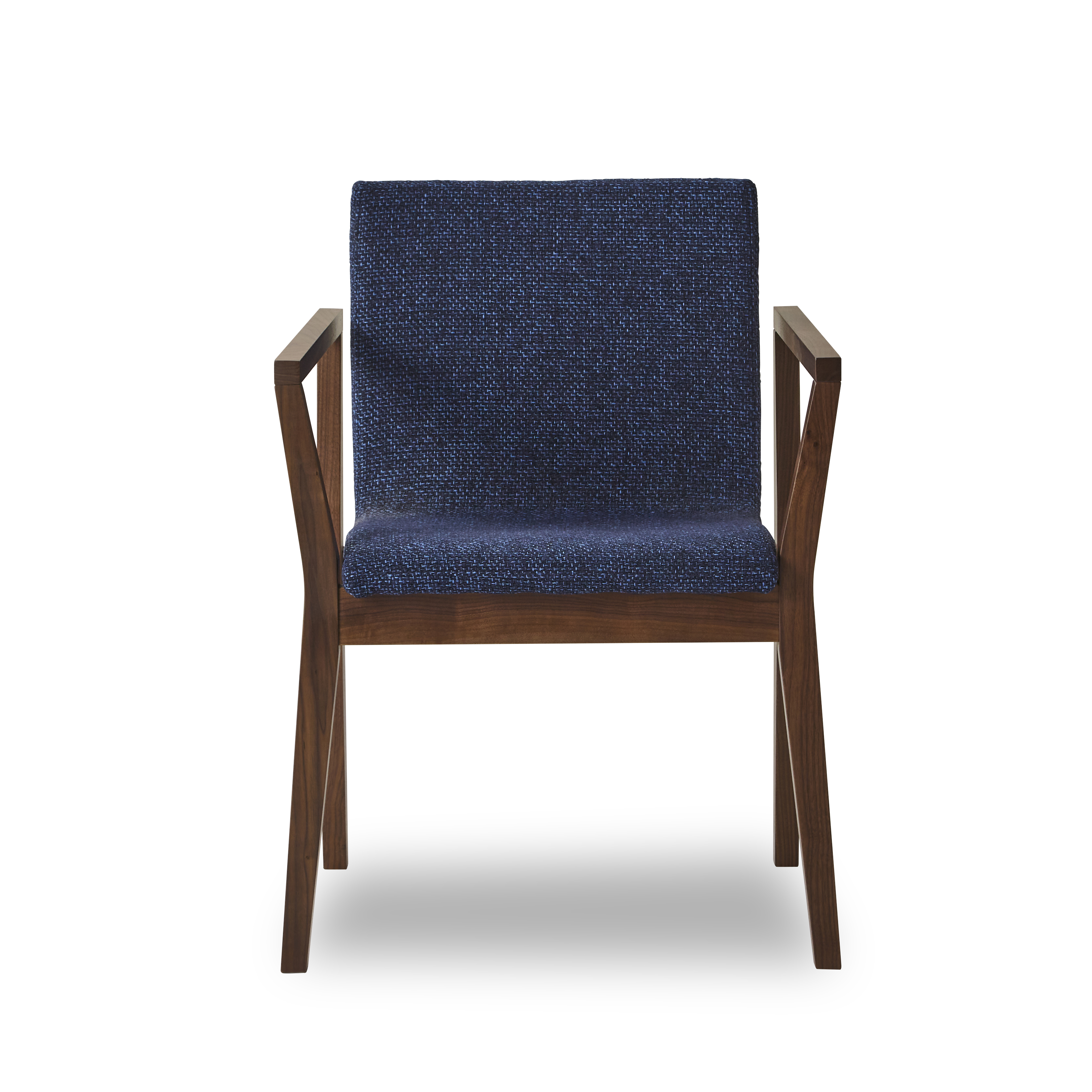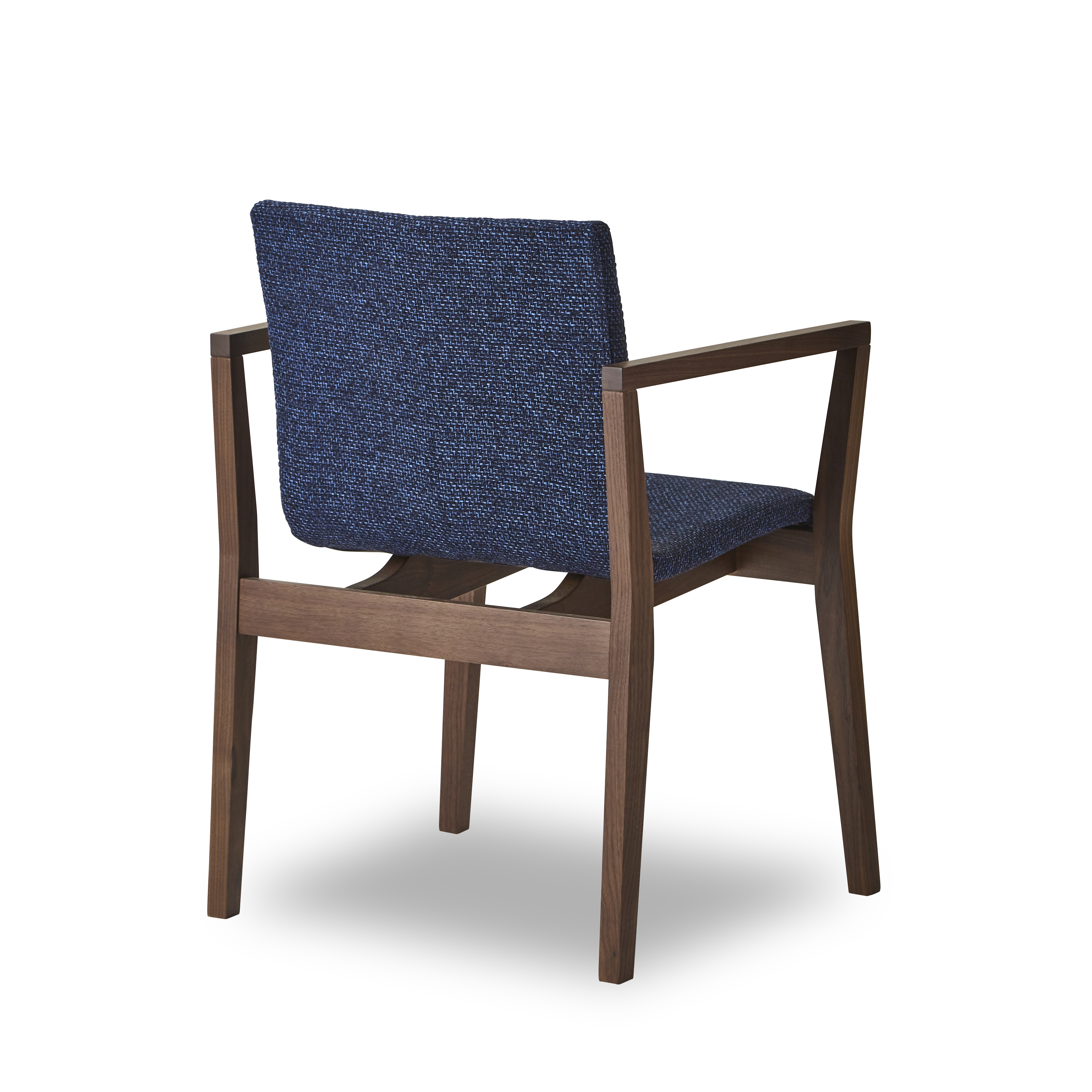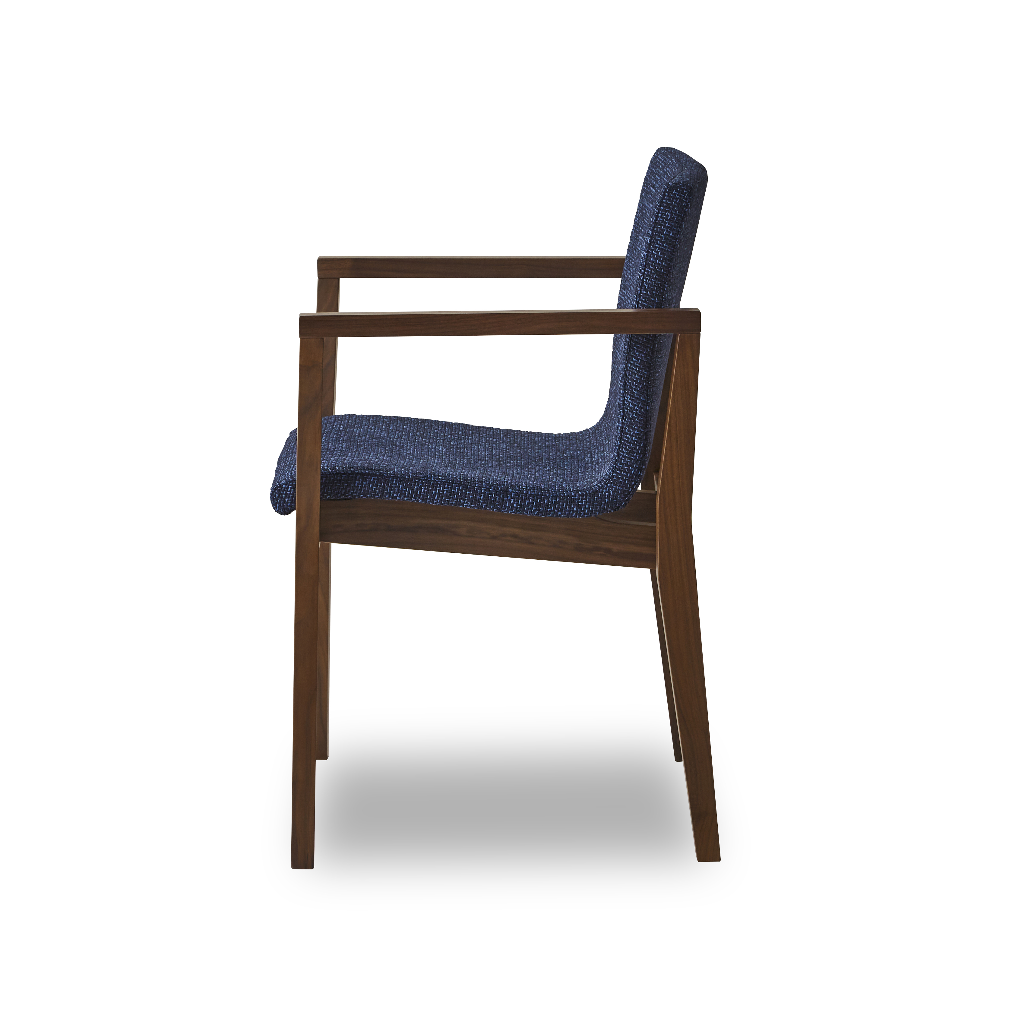 フレームは無垢材を贅沢に使用し、どの角度から見ても脚の表情が楽しめる曲線美と座面が浮遊して見えるように設計しています。