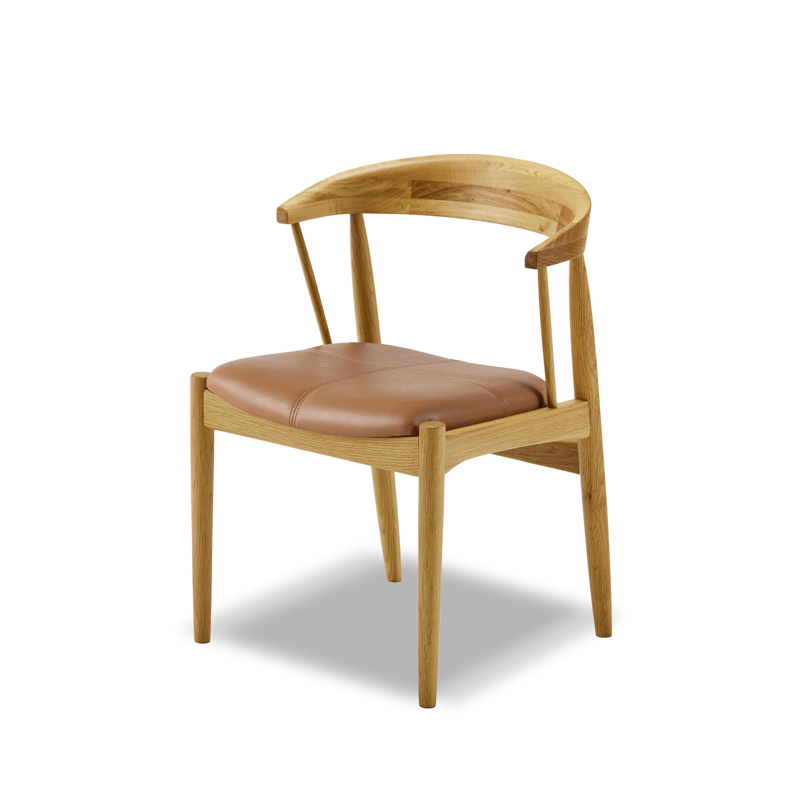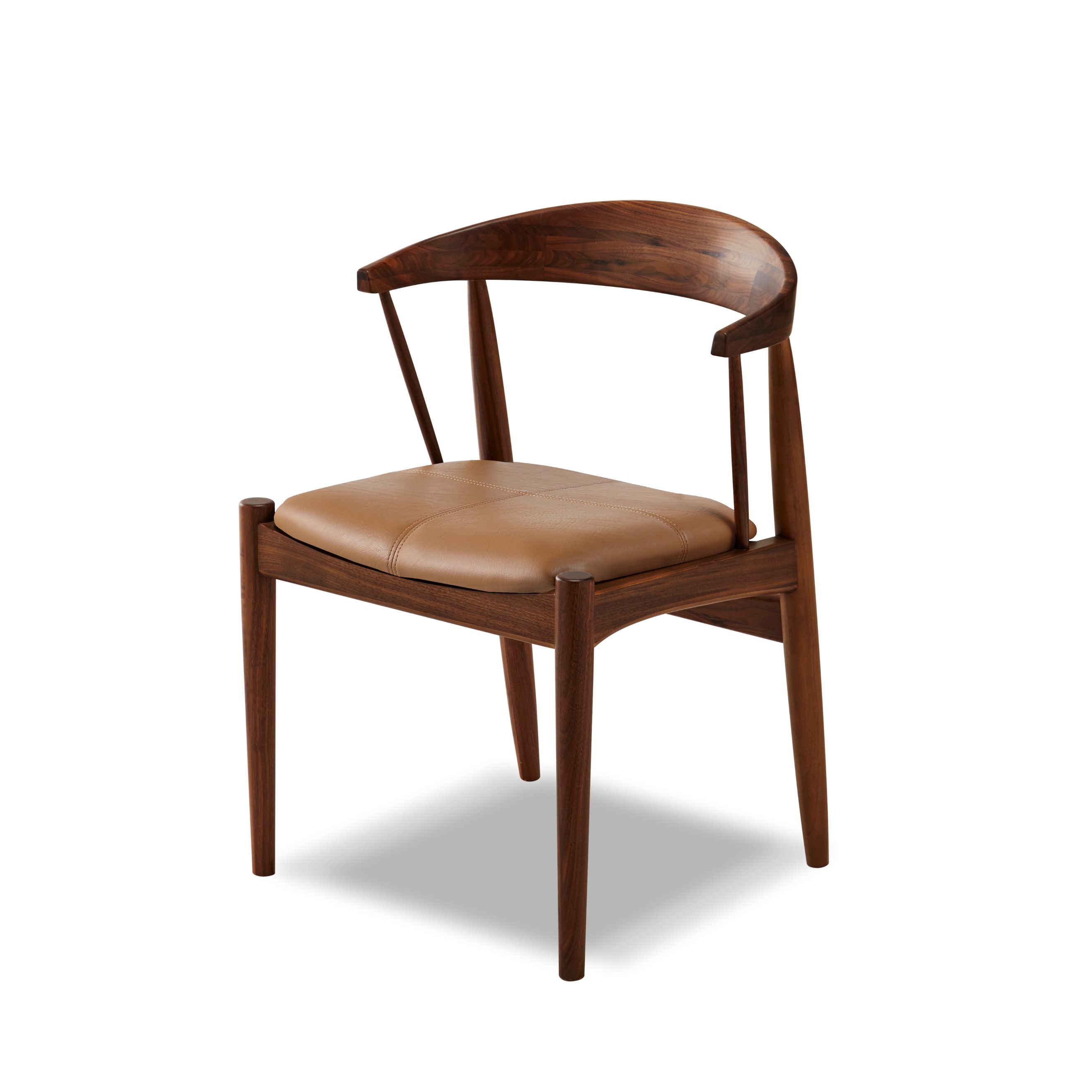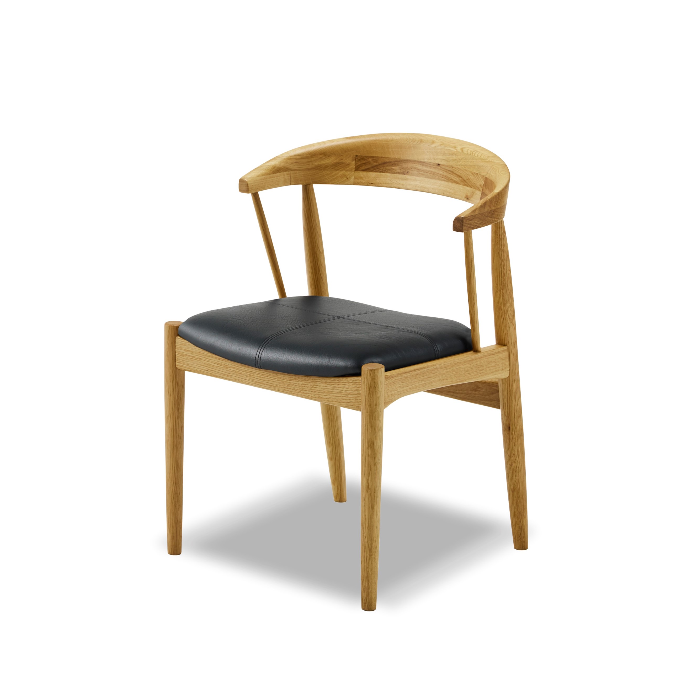 美しい曲線を描く無垢材を曲げて作られた笠木は、このチェアのデザインの主役であると同時に、腰へのフィット感と、肘掛けを兼ね備えた機能的なパーツです。