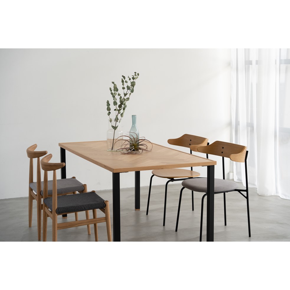 | 素材 | 〈ウォールナット〉ウォールナット突板、ポリウレタン塗装、スチール、ファブリック(布座)、ウレタンフォーム(布座) 〈オーク〉オーク突板、ポリウレタン塗装、スチール、ファブリック(布座)、ウレタンフォーム(布座) |
