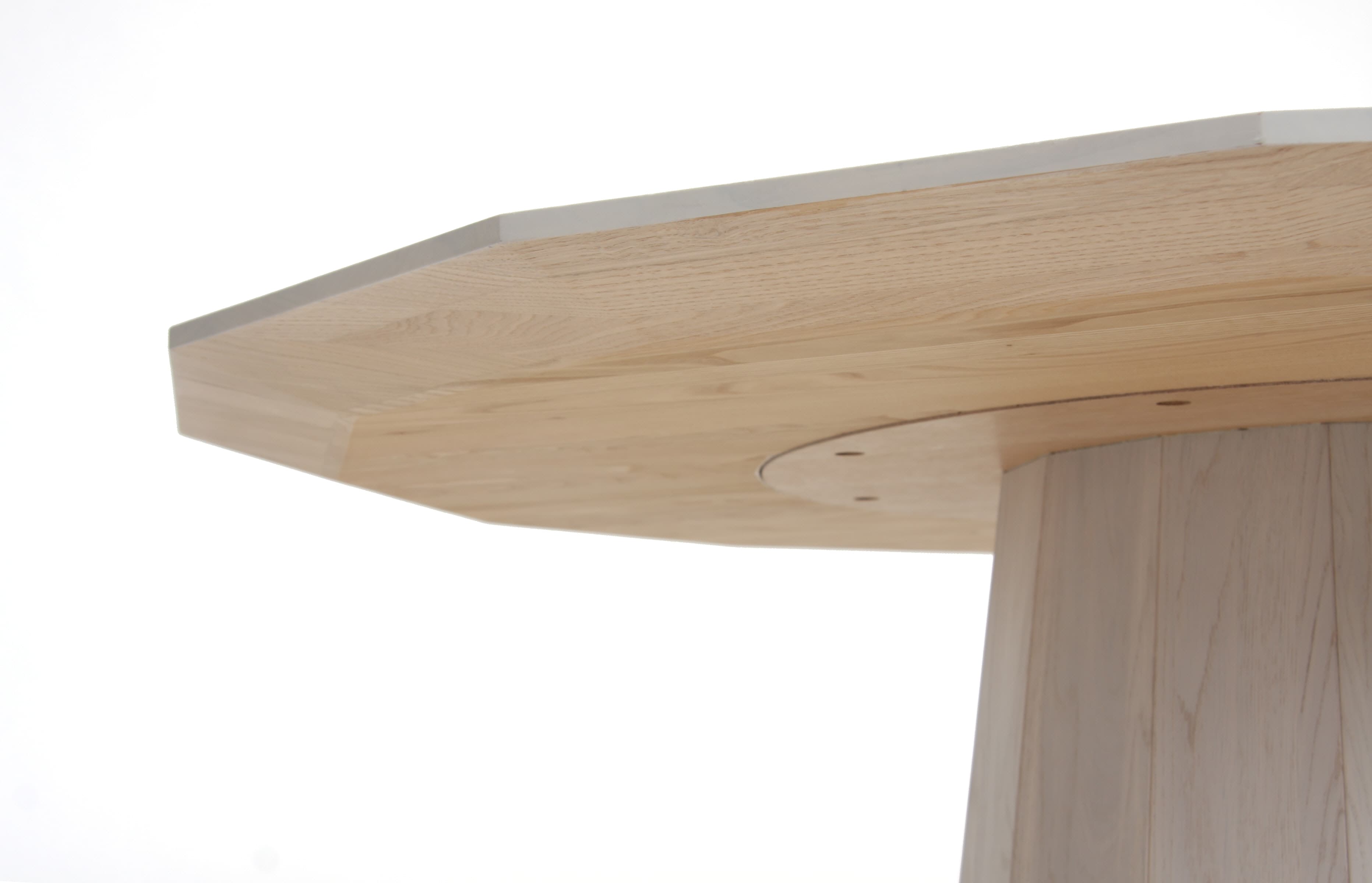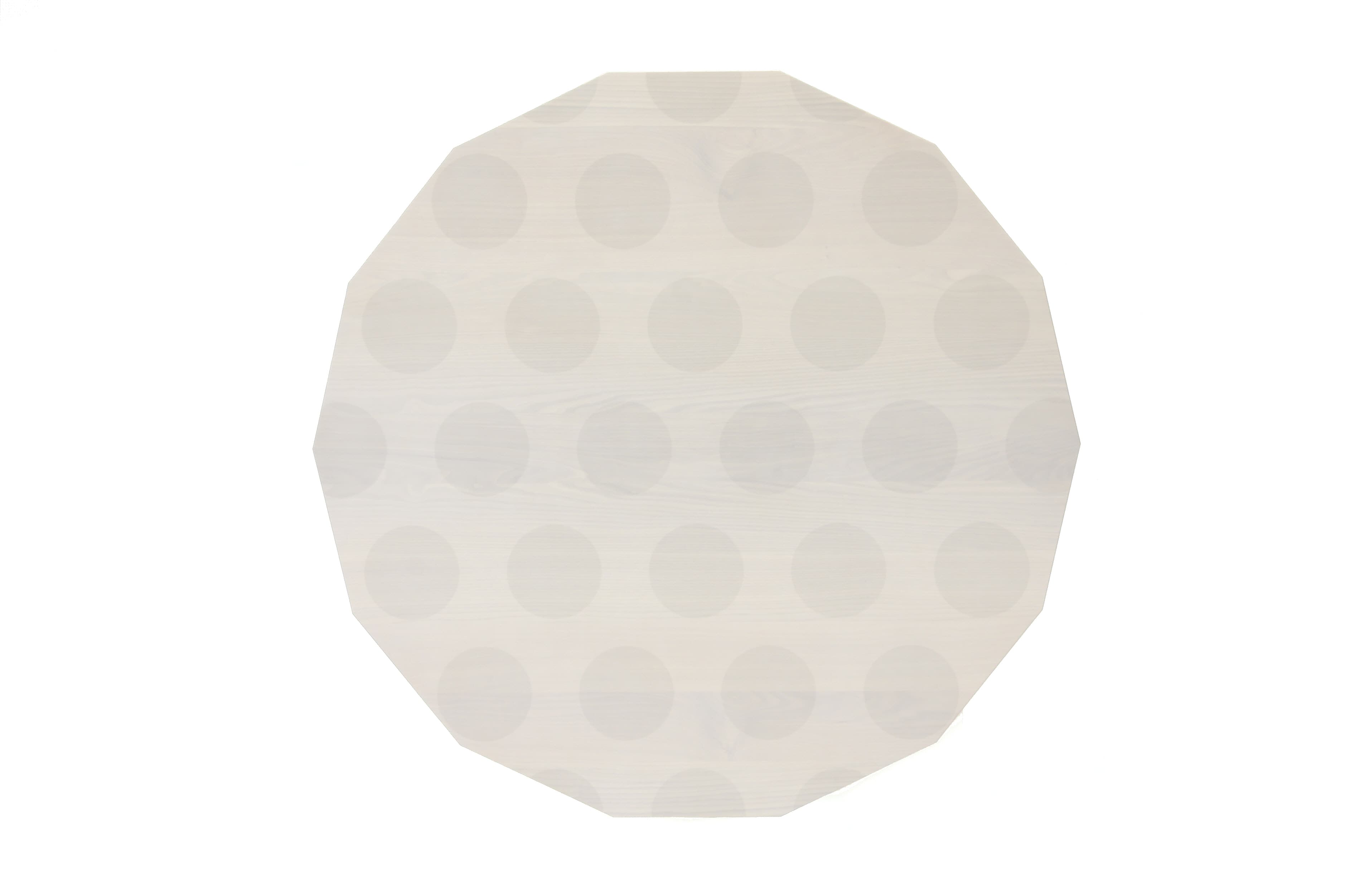 特徴的な樽形状のベースを持つ14角形のこのテーブルは、最新鋭の技術を用いて半透明の柄がプリントされており、伝統的な工芸技術にコンテンポラリーなデザインを重ねています。