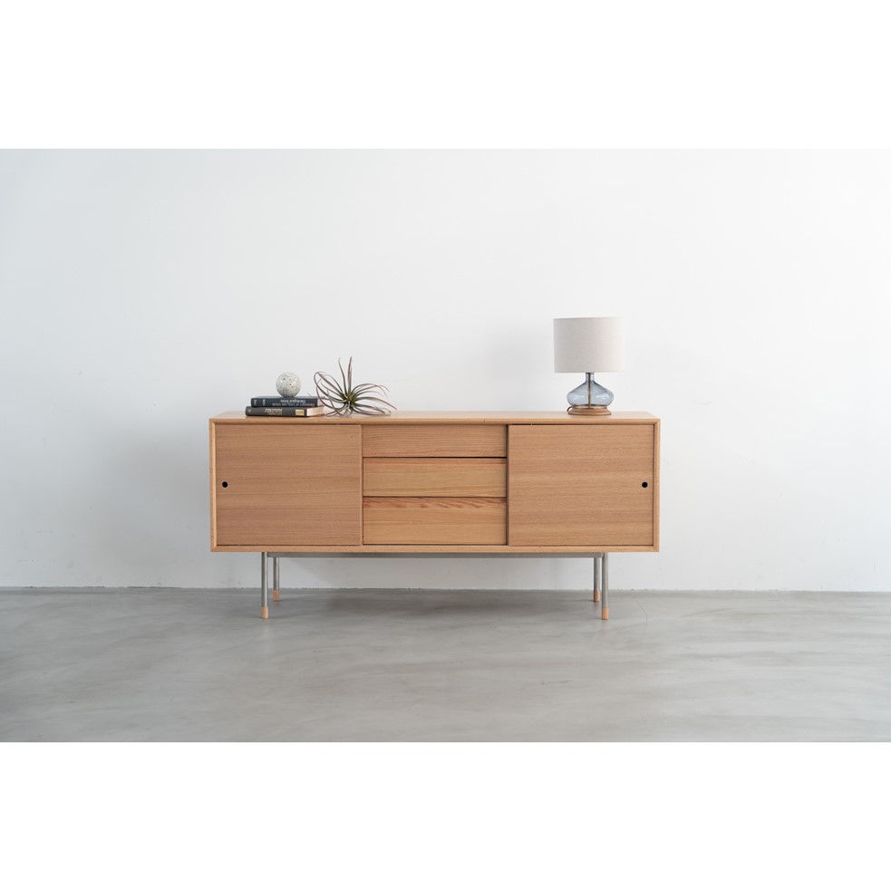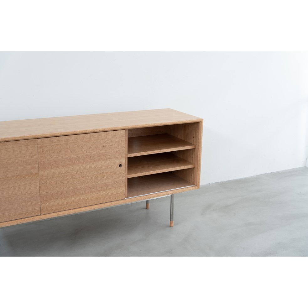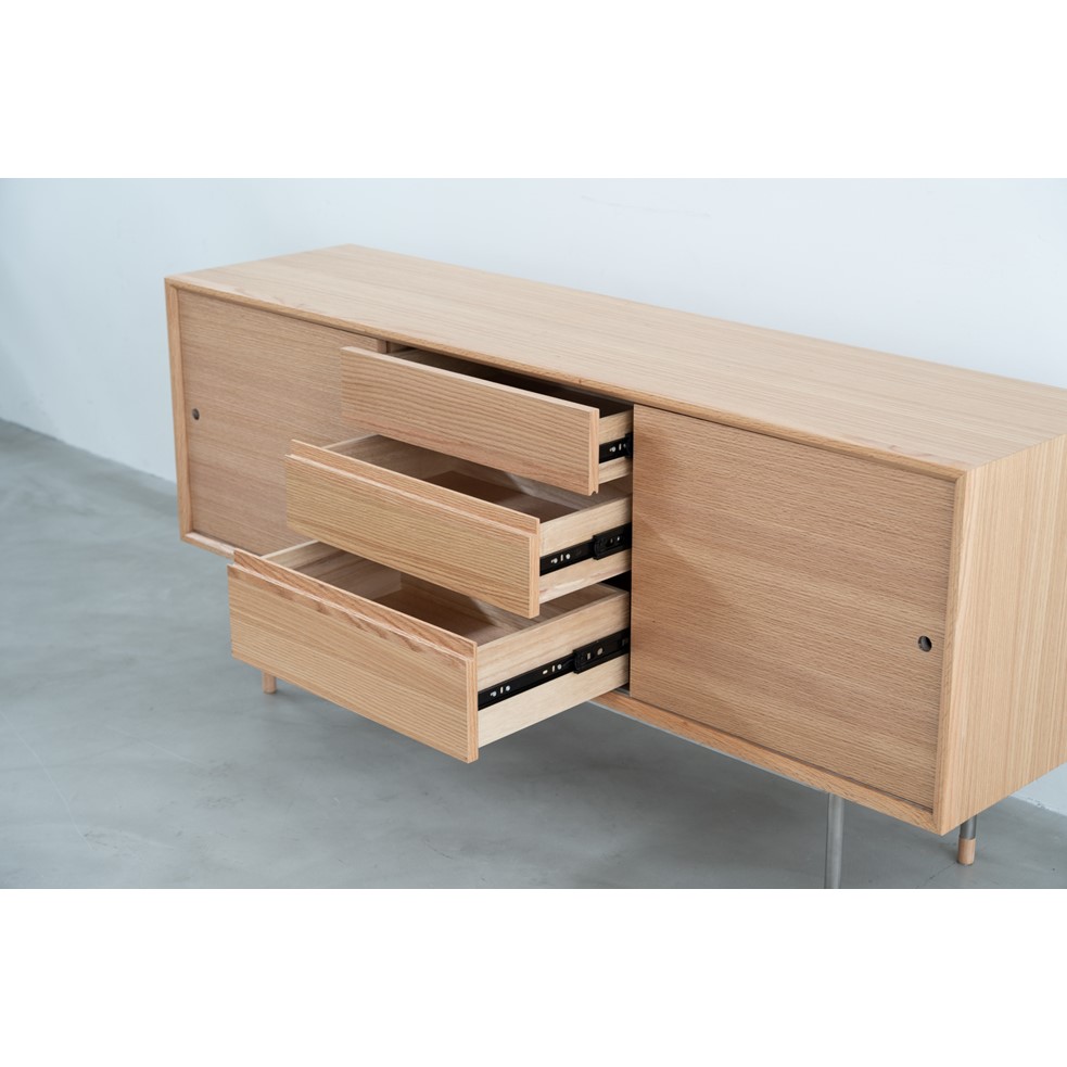 | 素材 | オーク突板・無垢材、ポリウレタン塗装、ステンレス、ヘアライン仕上げ、プリント化粧板(内部)、桐(内箱) |