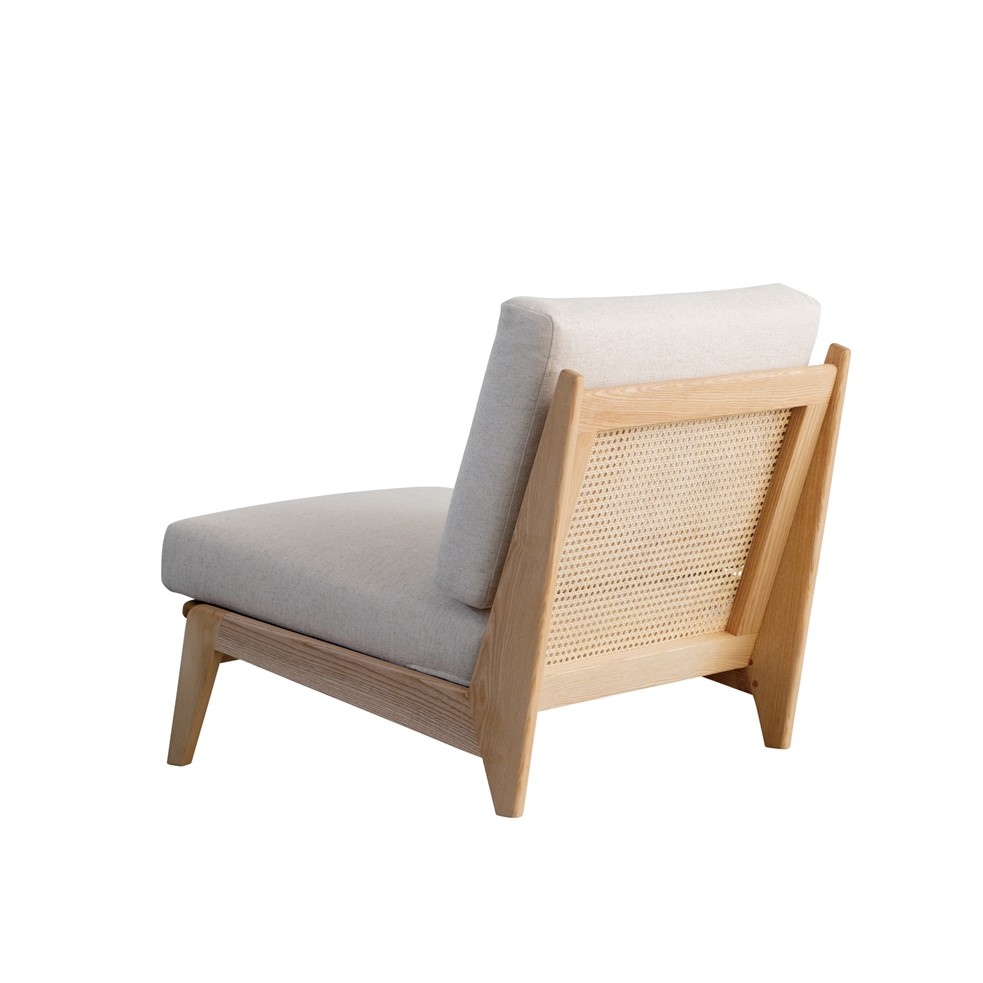 背面にはラタンをあしらい、後ろ姿も美しく軽やかな雰囲気に仕上げています。