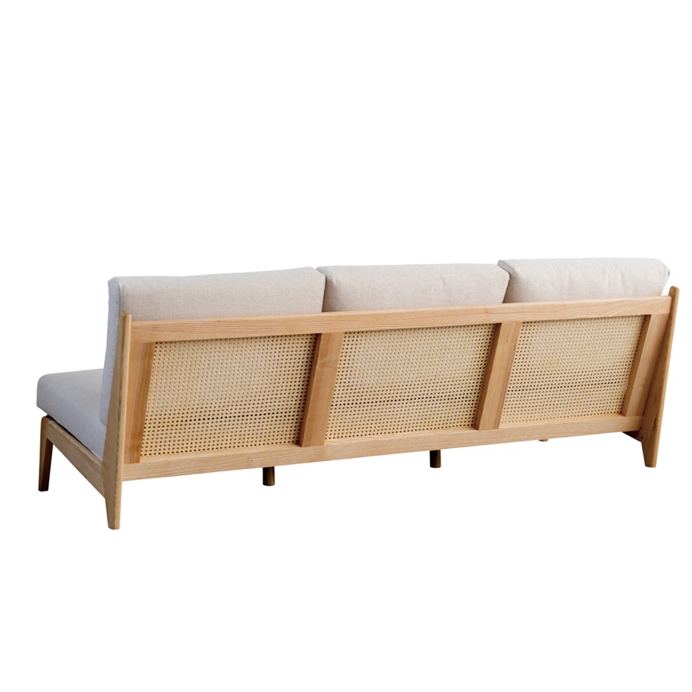 背面にはラタンをあしらい、後ろ姿も美しく軽やかな雰囲気に仕上げています。