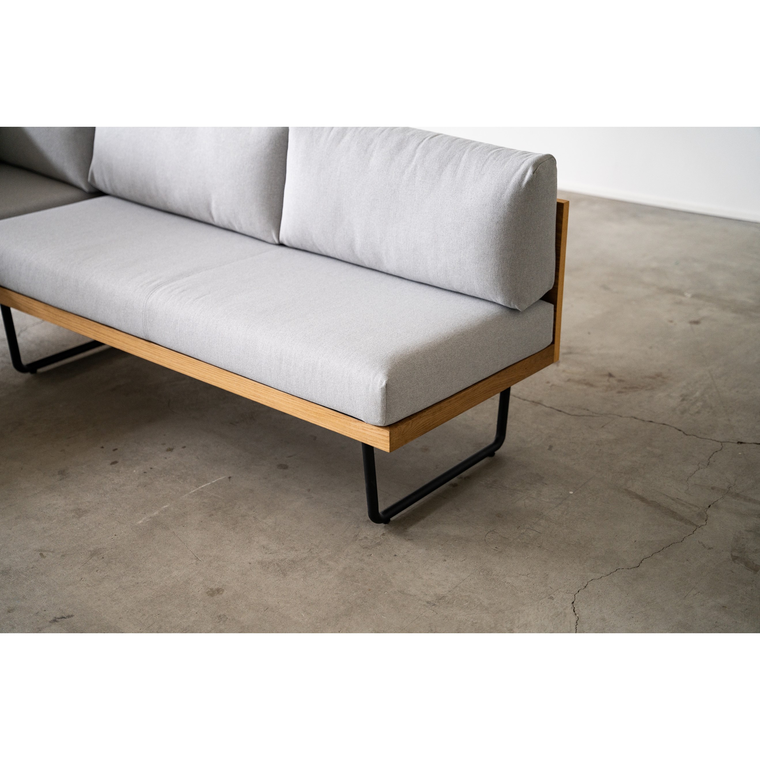 | 素材 | [背クッション]ウレタンフォーム、シリコンフィル [座クッション]ウレタンフォーム、シリコンフィル [張地]ファブリック(ポリエステル) [座面下構造]ウェービングベルト [本体]オーク突板(オイル仕上げ) [脚部]スチール(粉体塗装) |