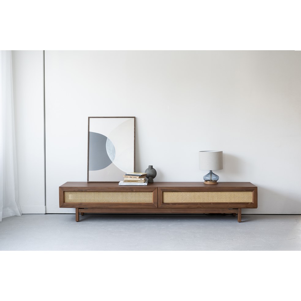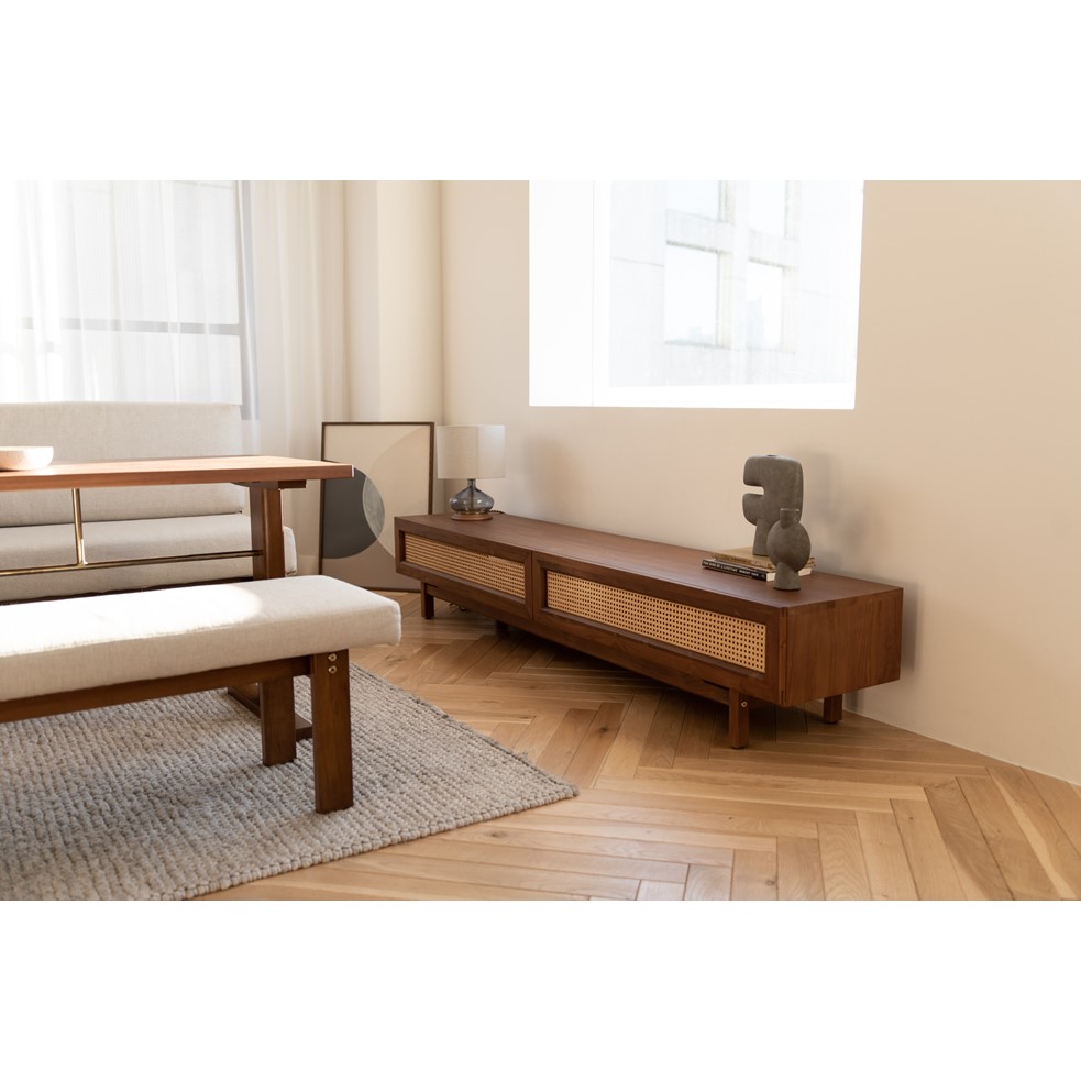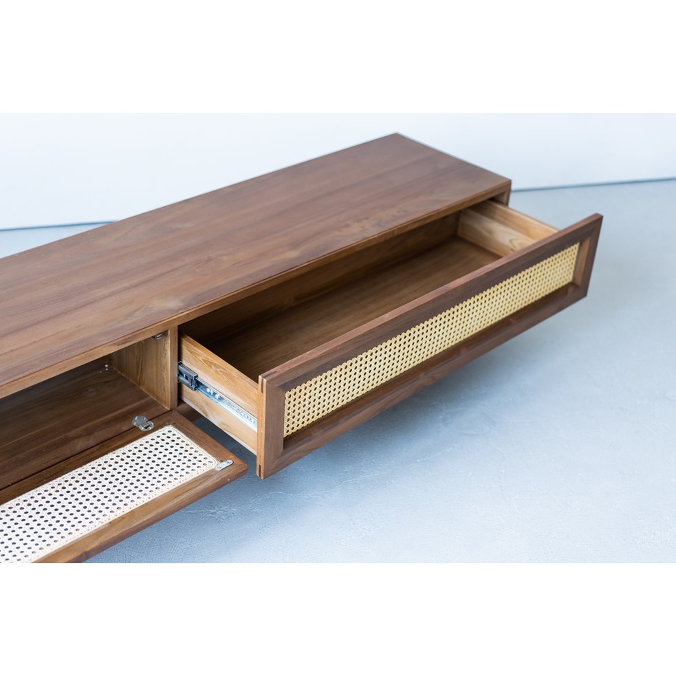 チーク材とラタンの組み合わせが特徴のTVボード。