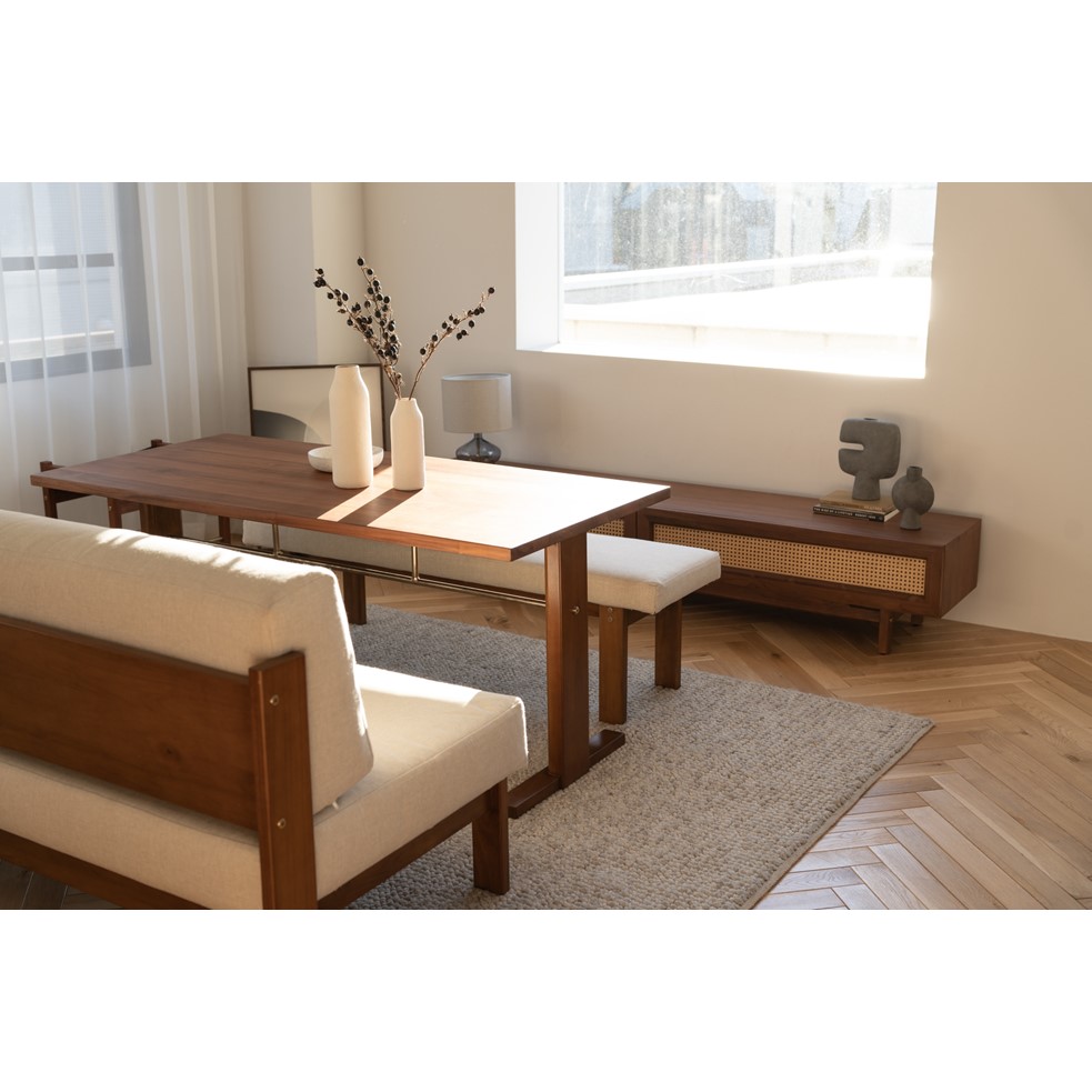 チーク無垢材を落ち着いたカラーに仕上げ、