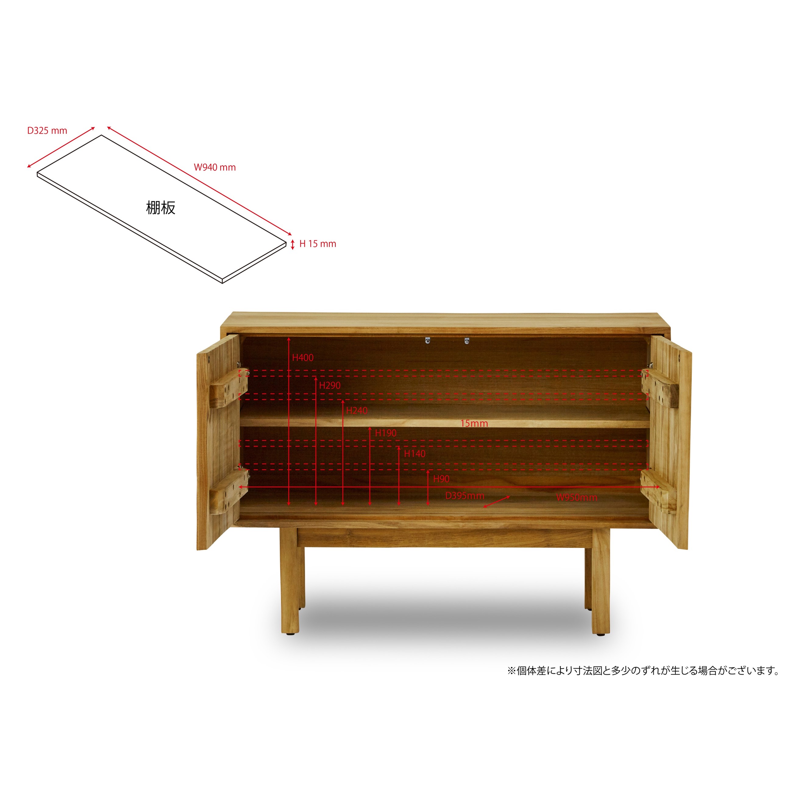「千切り」がアクセントのチーク無垢材のサイドボード。