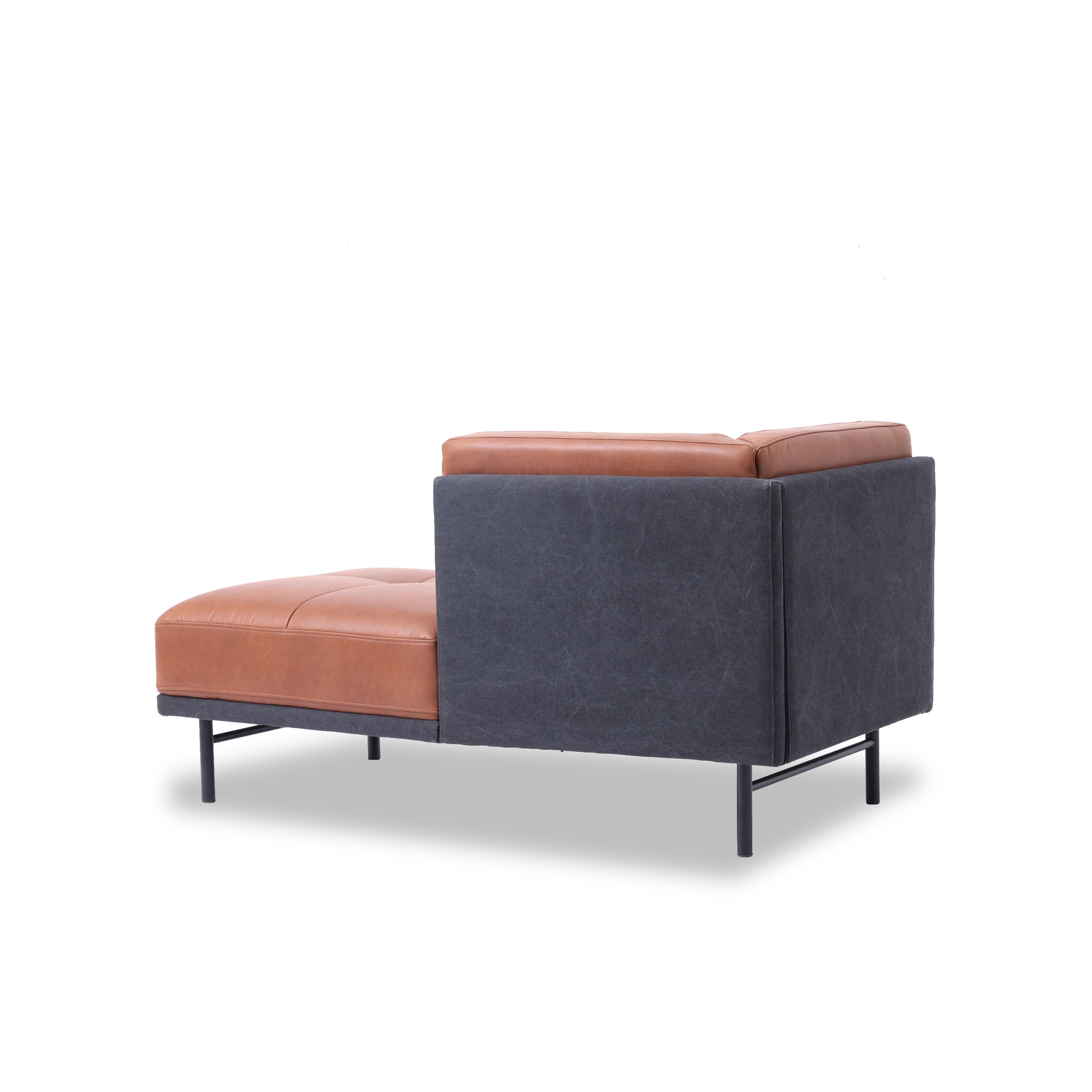 オイルレザーのような風合いのスーパーレザーテックスとウォッシュド加工されたキャンバス生地の組合せが新鮮なカウチソファ。