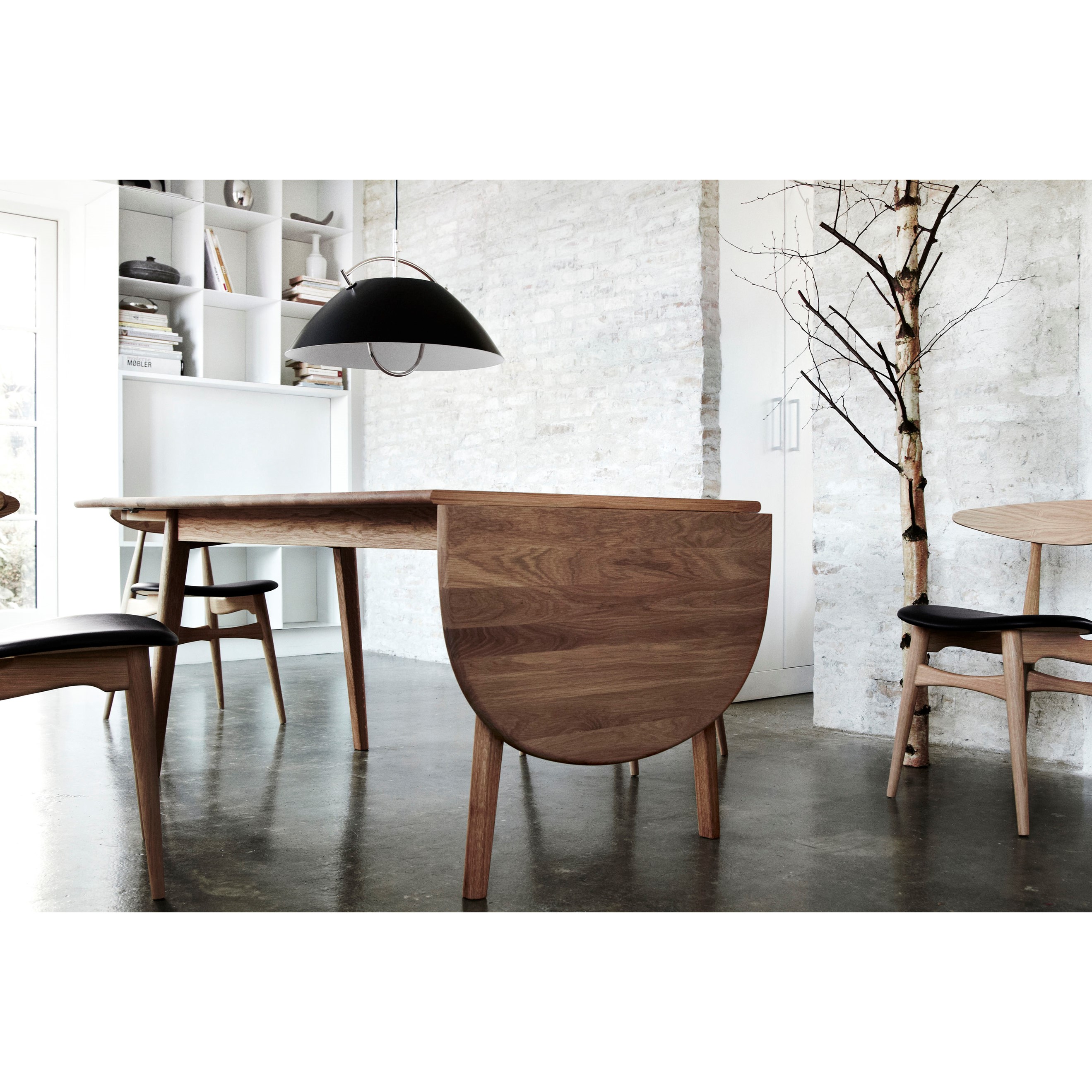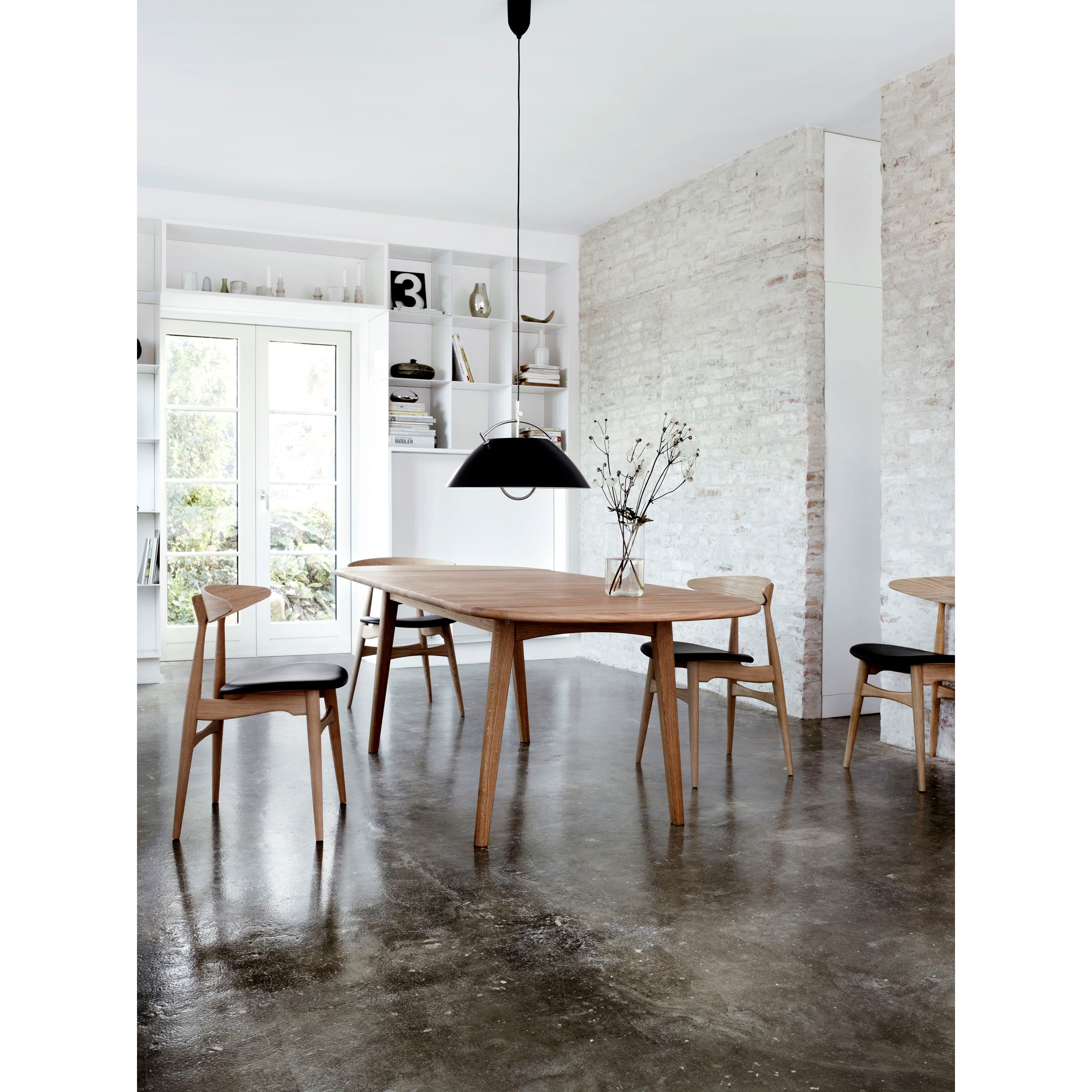 また、CH006には、来客に応じて大きさを変えられる、伸長板が天板の両端に装備されています。素材は無垢のビーチ材又はオーク材。ウェグナーのどのダイニングチェアを選ぶか、椅子のスタイル次第で様々な演出ができるテーブルです。