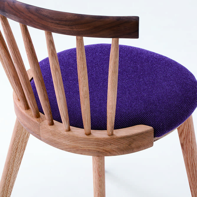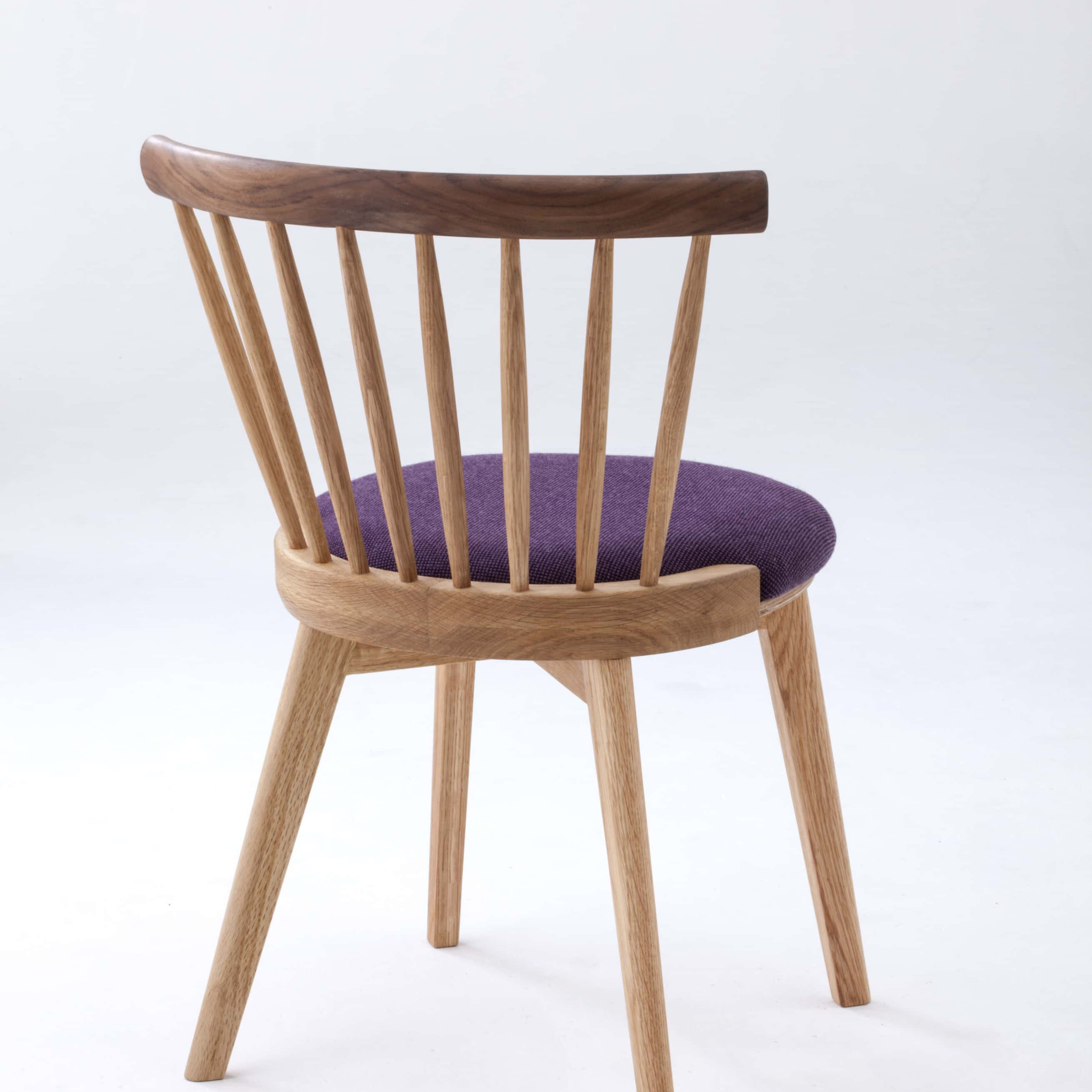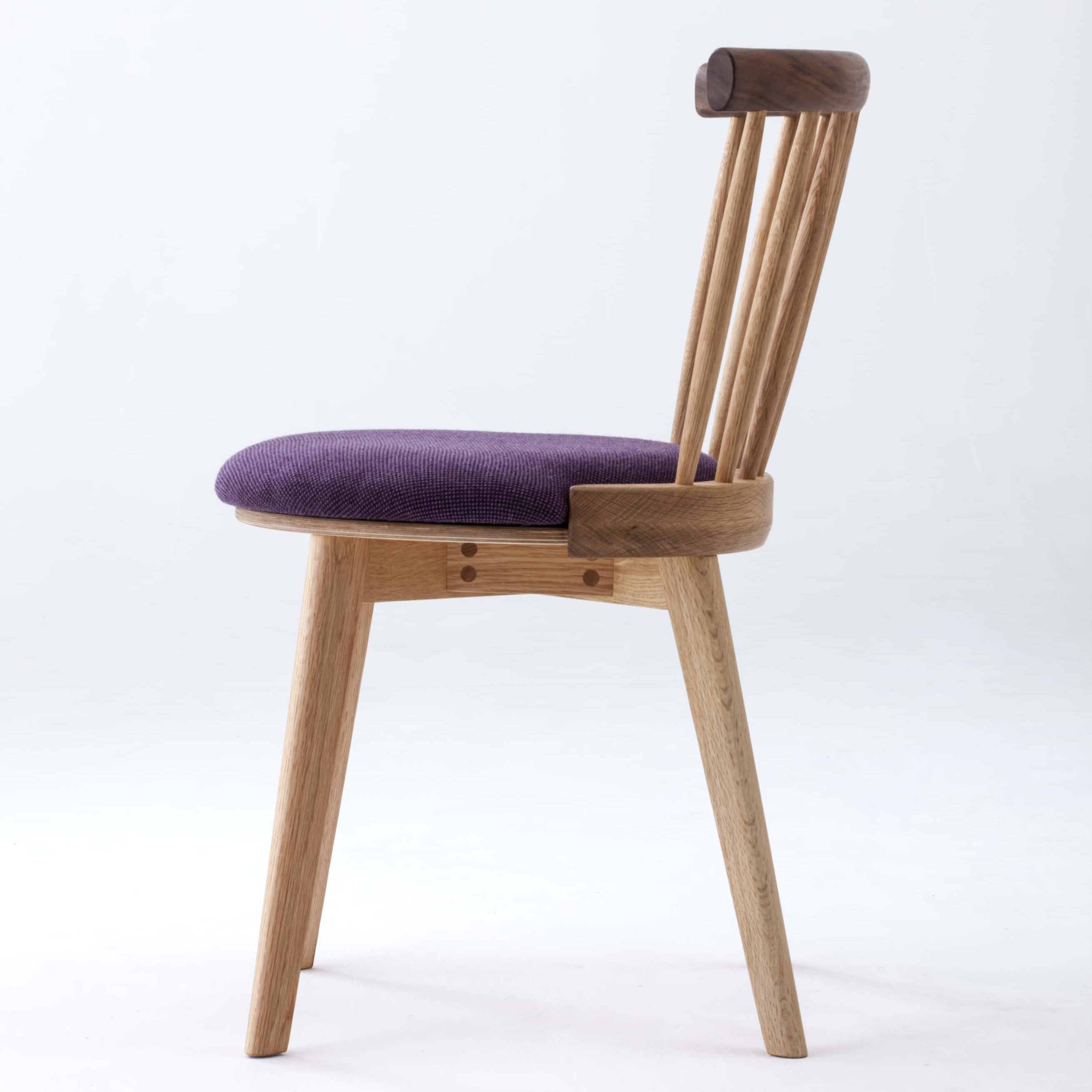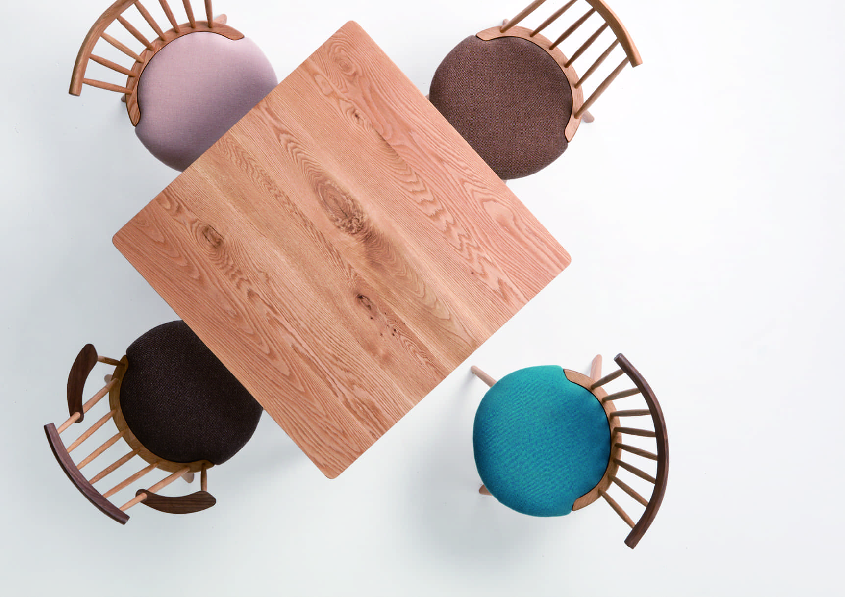 ラウンドした笠木とスピンドルが特徴的なMタイプは、少し行儀悪く、斜めや横向きに座ってもやさしく背中を受け止めます。おしゃべりがはずむダイニングに。